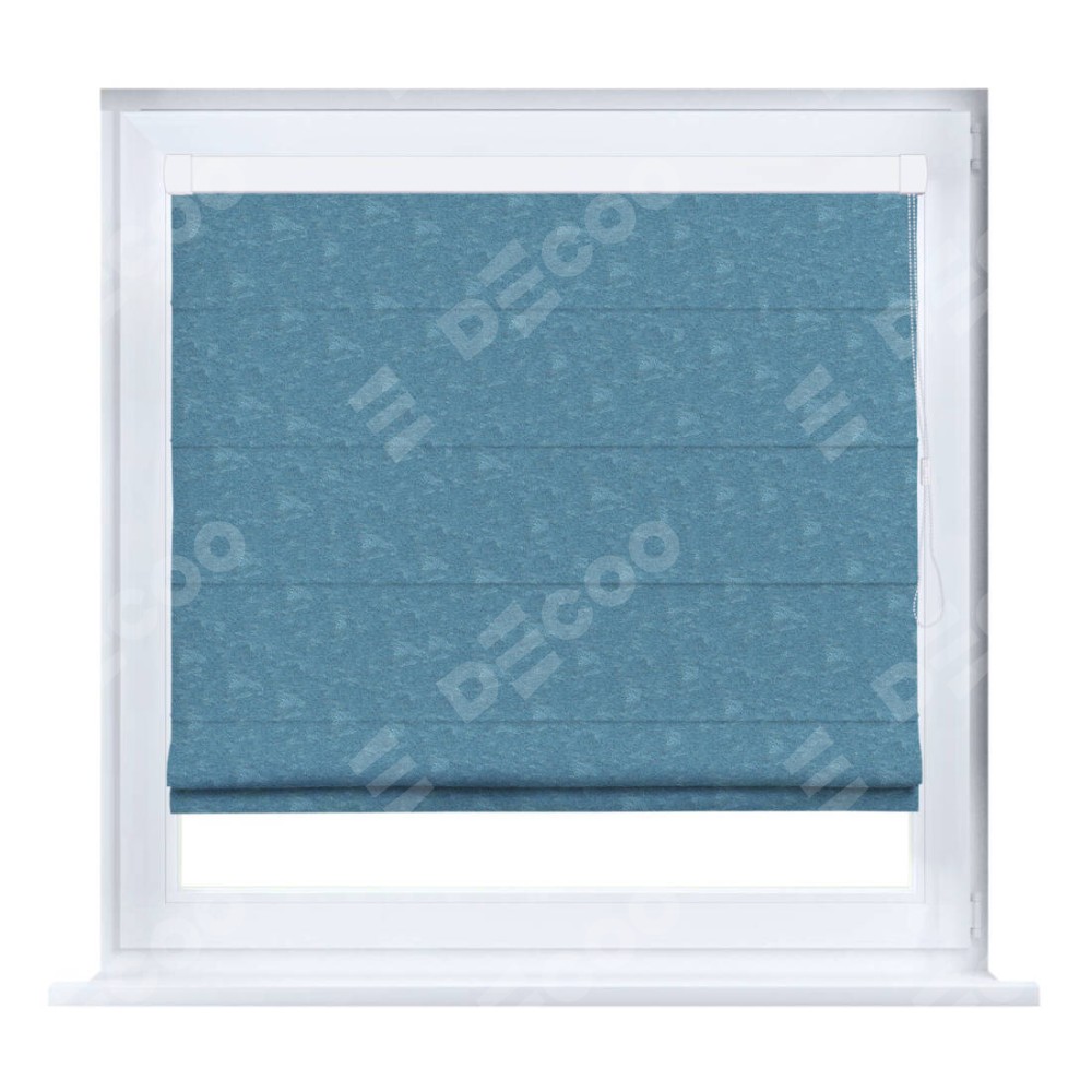 Римская штора производителя «Cortin», устанавливается на створку окна, пошита из ткани софт мрамор голубой, артикул 93580. Штора шьётся по индивидуальным размерам, для данного типа римской шторы возможная ширина от 35 до 150 см., высота до 250 см.