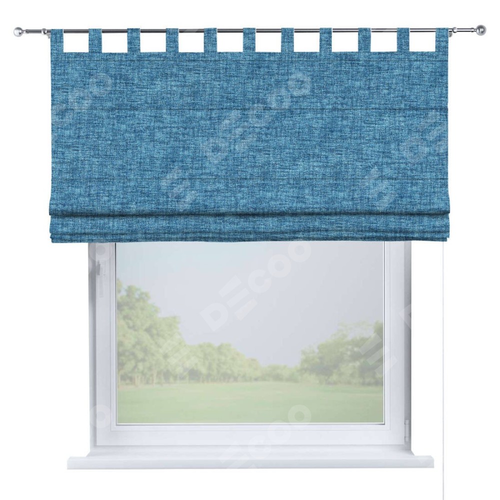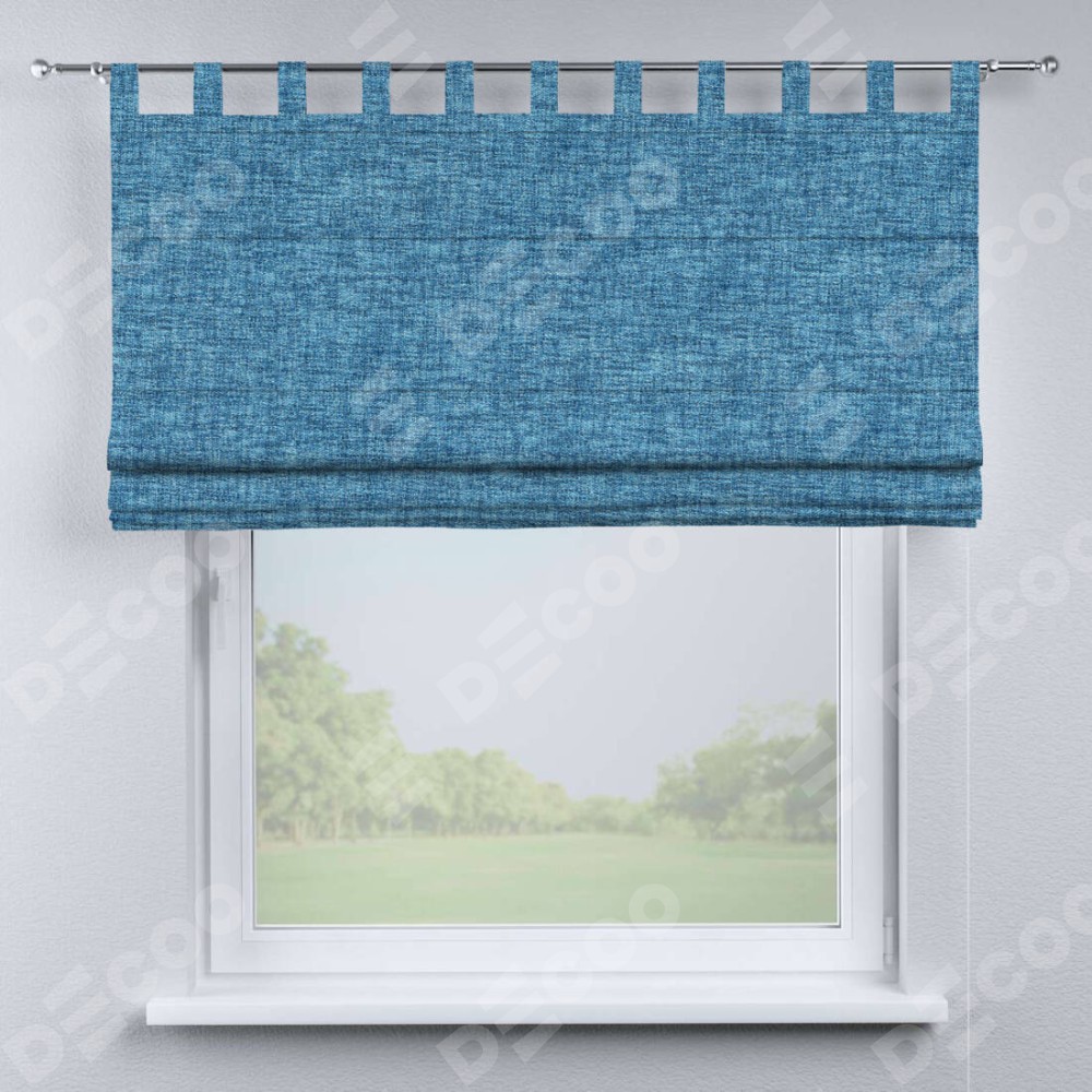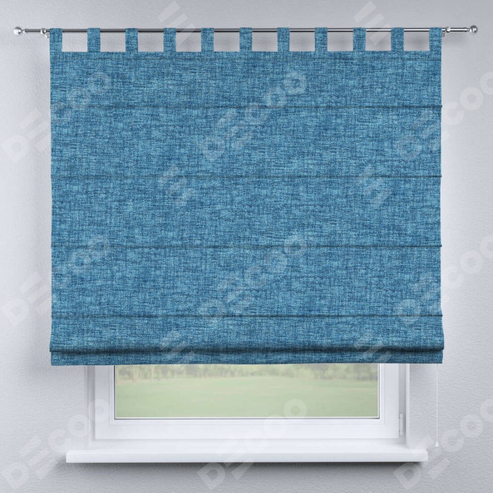 Римская штора производителя «Cortin», используется для проёма, пошита из ткани рогожка димаут джинс, артикул ткани 91026. Данная модель пошита на петлях, комплектуется на выбор круглым карнизом и подходит для монтажа на стену. Римская штора на петлях имеет простую систему регулировки высоты, отличительным преимуществом данной модели является простой способ монтажа. Достаточно повесить ее на трубу и штора готова!