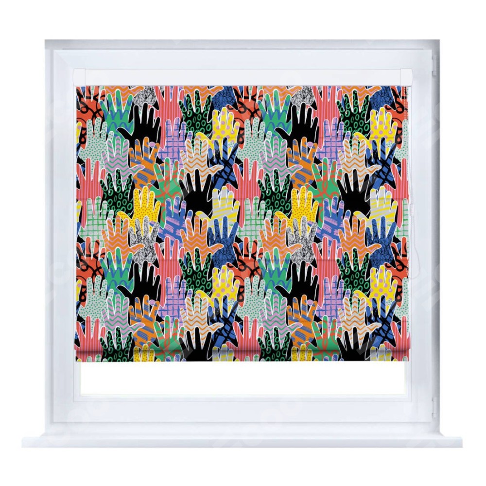 Римская штора производителя «Cortin», устанавливается на створку окна, пошита из ткани блэкаут с нанесением сублимационной печати «Коллаж поп-арт». Штора шьётся по индивидуальным размерам, для данного типа римской шторы возможная ширина от 35 до 150 см., высота до 250 см.