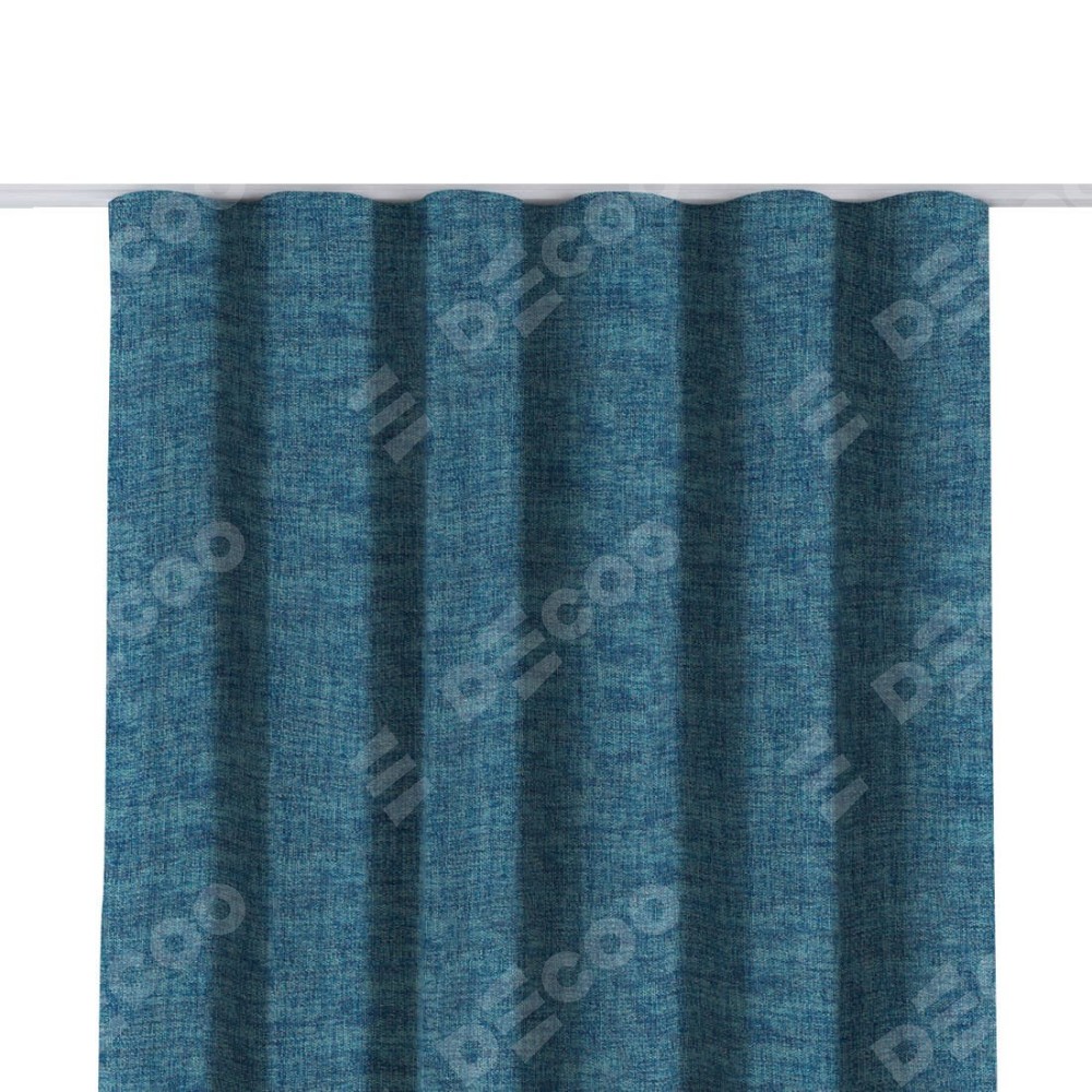 Комплект прямых штор, от производителя «Cortin», пошиты из ткани рогожка димаут лазурно-синий, артикул ткани 91024. С изнаночной стороны в верхней части штор пристрачивается шторная лента с декоративными складками «Волна». Для создания элегантных складок прямые шторы шьются по стандарту с коэффициентом 1:2 (на 100 см. ширины проёма 200 см. ширины ткани).