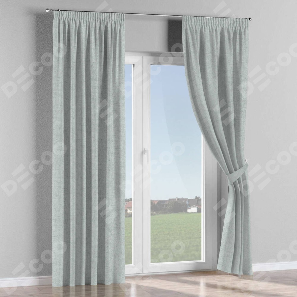 Комплект прямых штор, от производителя «Cortin», пошиты из ткани рогожка димаут серый, артикул ткани 91027. С изнаночной стороны в верхней части штор пристрачивается шторная лента с декоративными складками «Карандаш». Для создания элегантных складок прямые шторы шьются по стандарту с коэффициентом 1:2 (на 100 см. ширины проёма 200 см. ширины ткани).