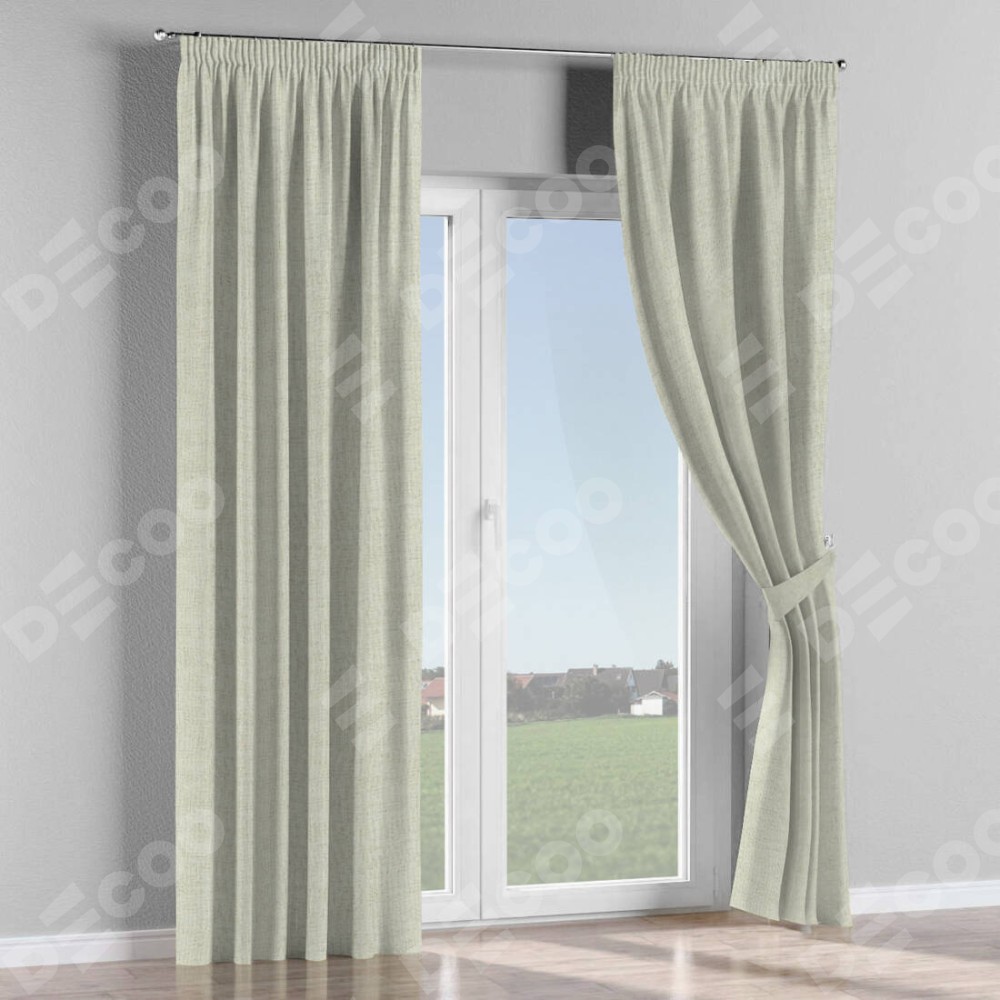 Комплект прямых штор, от производителя «Cortin», пошиты из ткани рогожка димаут серо-бежевый, артикул ткани 91014. С изнаночной стороны в верхней части штор пристрачивается шторная лента с декоративными складками «Карандаш». Для создания элегантных складок прямые шторы шьются по стандарту с коэффициентом 1:2 (на 100 см. ширины проёма 200 см. ширины ткани).