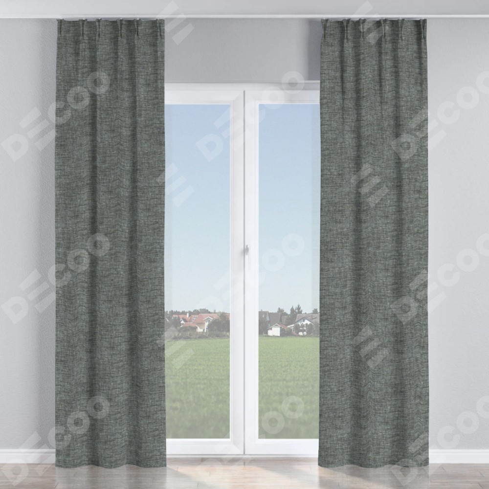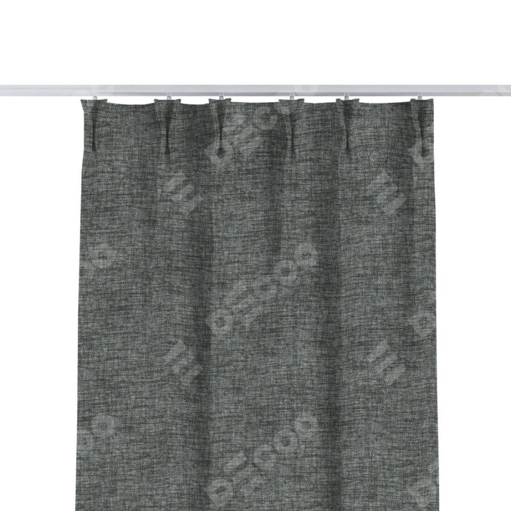 Комплект прямых штор, от производителя «Cortin», пошиты из ткани рогожка димаут тёмно-серый, артикул ткани 91029. С изнаночной стороны в верхней части штор пристрачивается шторная лента с декоративными складками «Кустик». Для создания элегантных складок прямые шторы шьются по стандарту с коэффициентом 1:2 (на 100 см. ширины проёма 200 см. ширины ткани).