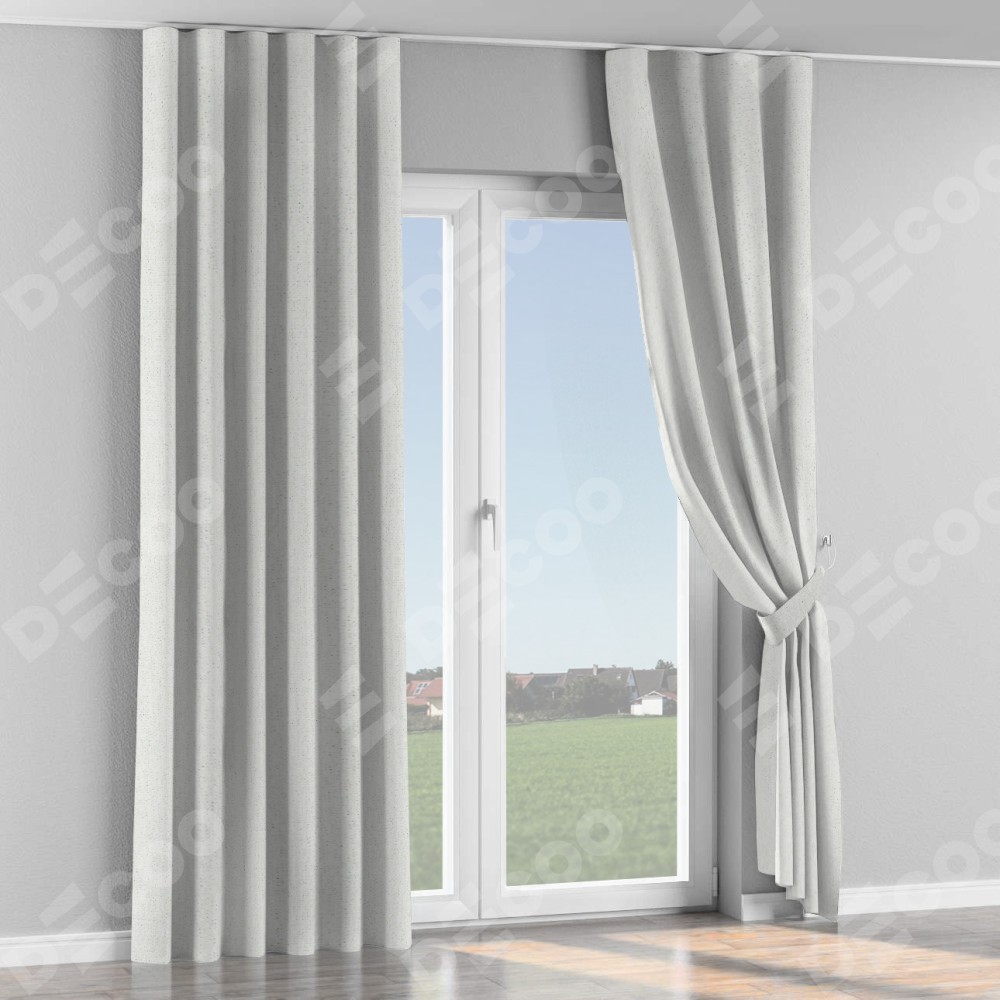 Комплект прямых штор, от производителя «Cortin», пошиты из ткани лён шампань, артикул ткани 91399. С изнаночной стороны в верхней части штор пристрачивается шторная лента с декоративными складками «Волна». Для создания элегантных складок прямые шторы шьются по стандарту с коэффициентом 1:2 (на 100 см. ширины проёма 200 см. ширины ткани).