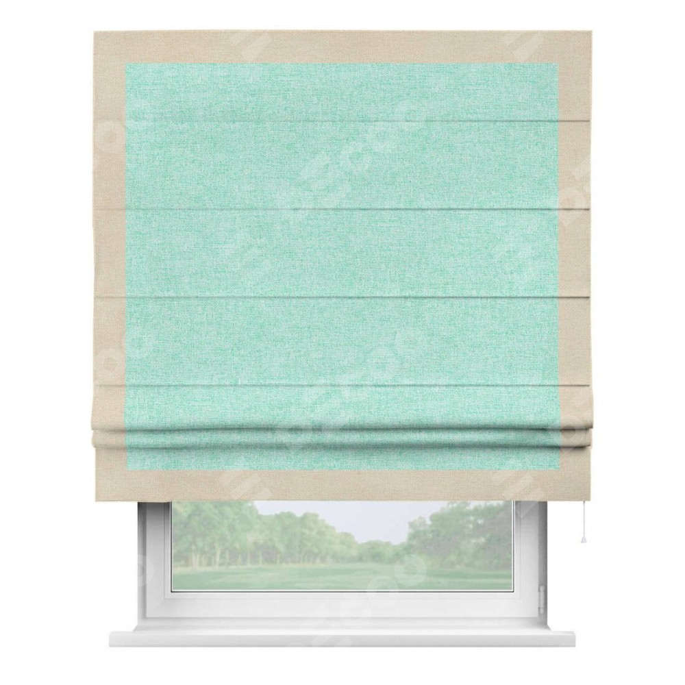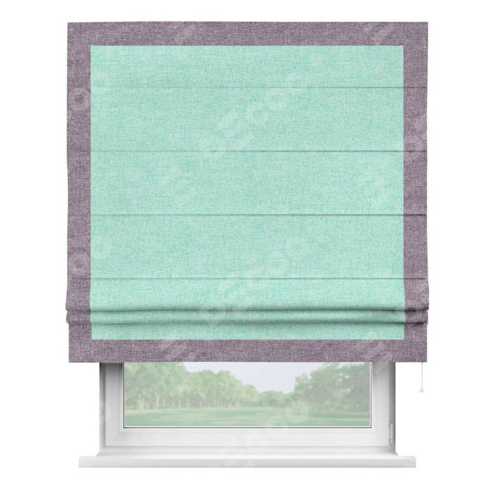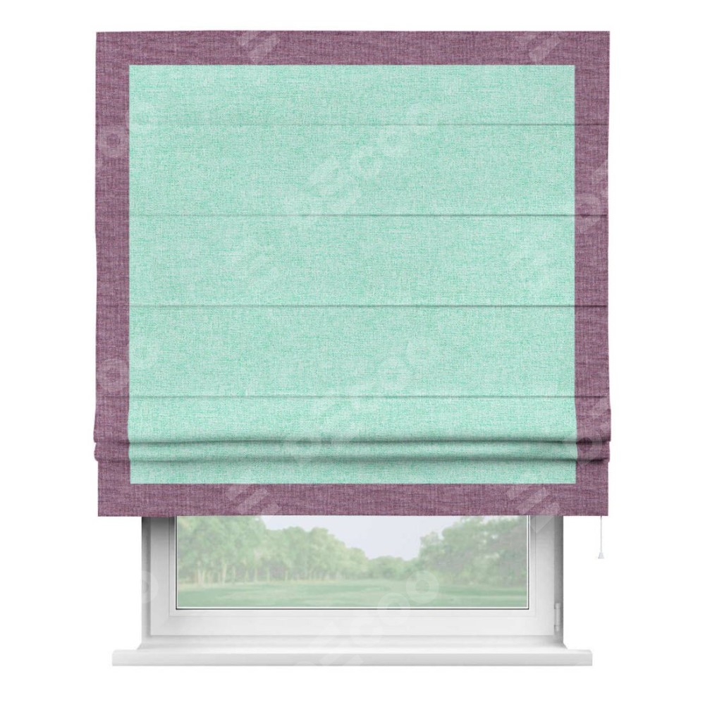 Римская штора пошита из ткани лён кашемир мятный, артикул: 21617, с отделкой кантом «Чесс» отличается своей уникальной деталью — наличием канта не только по бокам и снизу, но и сверху по всем краям шторы. Это придает шторе особенно аккуратный и завершенный вид, делая акцент на границах и форме шторы. Отделка кантом по всему периметру шторы усиливает её декоративные качества и подчеркивает строгую геометрию, что может быть особенно актуально для современных и минималистичных интерьеров.