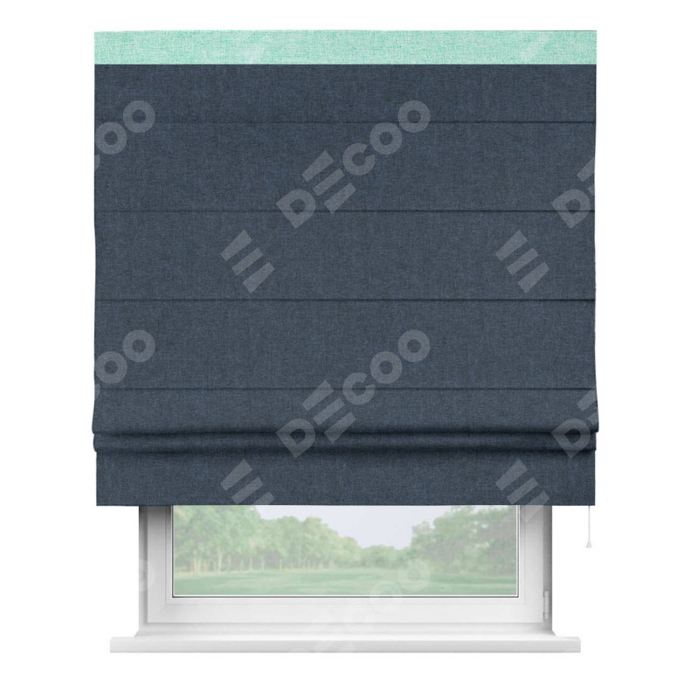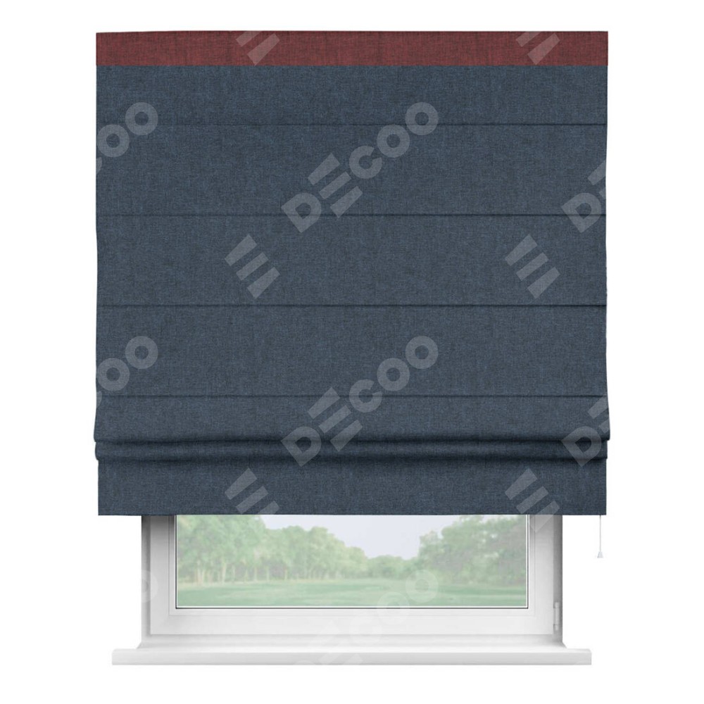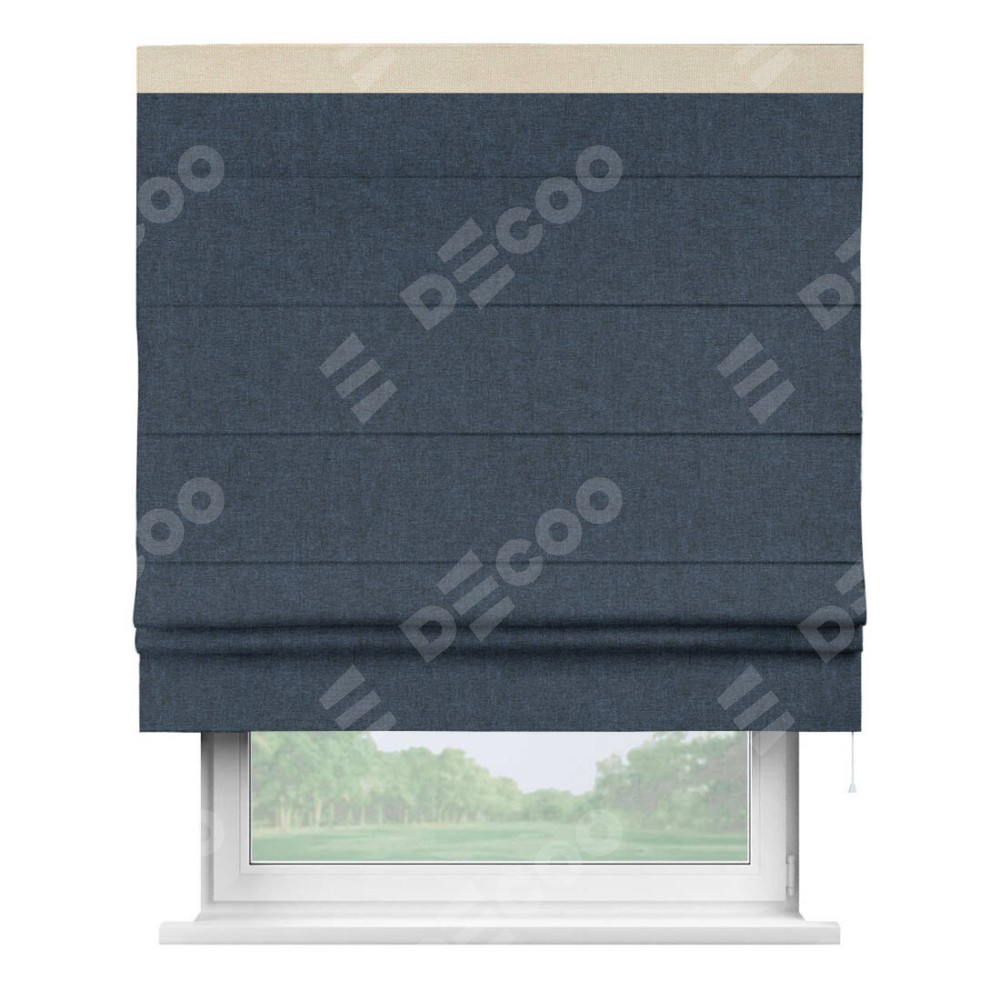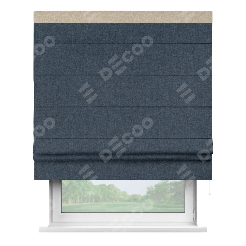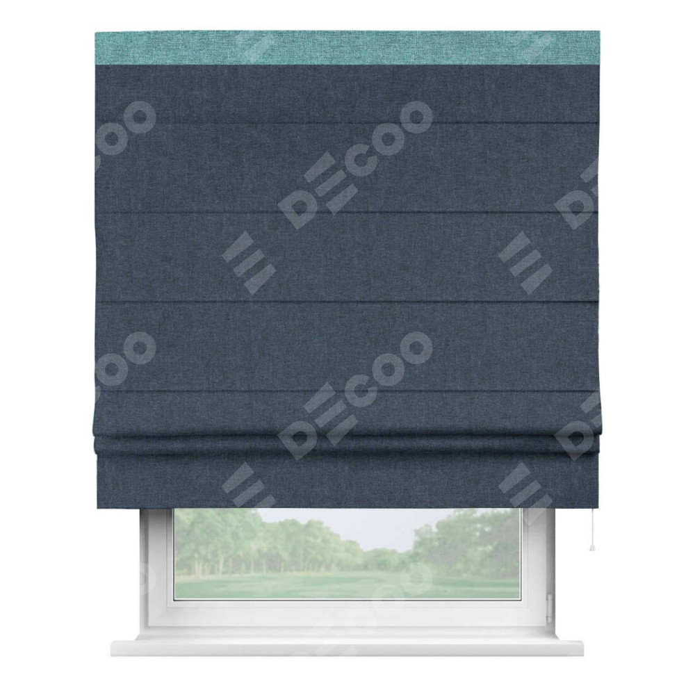 Римская штора «Кортин» для проёма, лён кашемир синий, с кантом Кинг