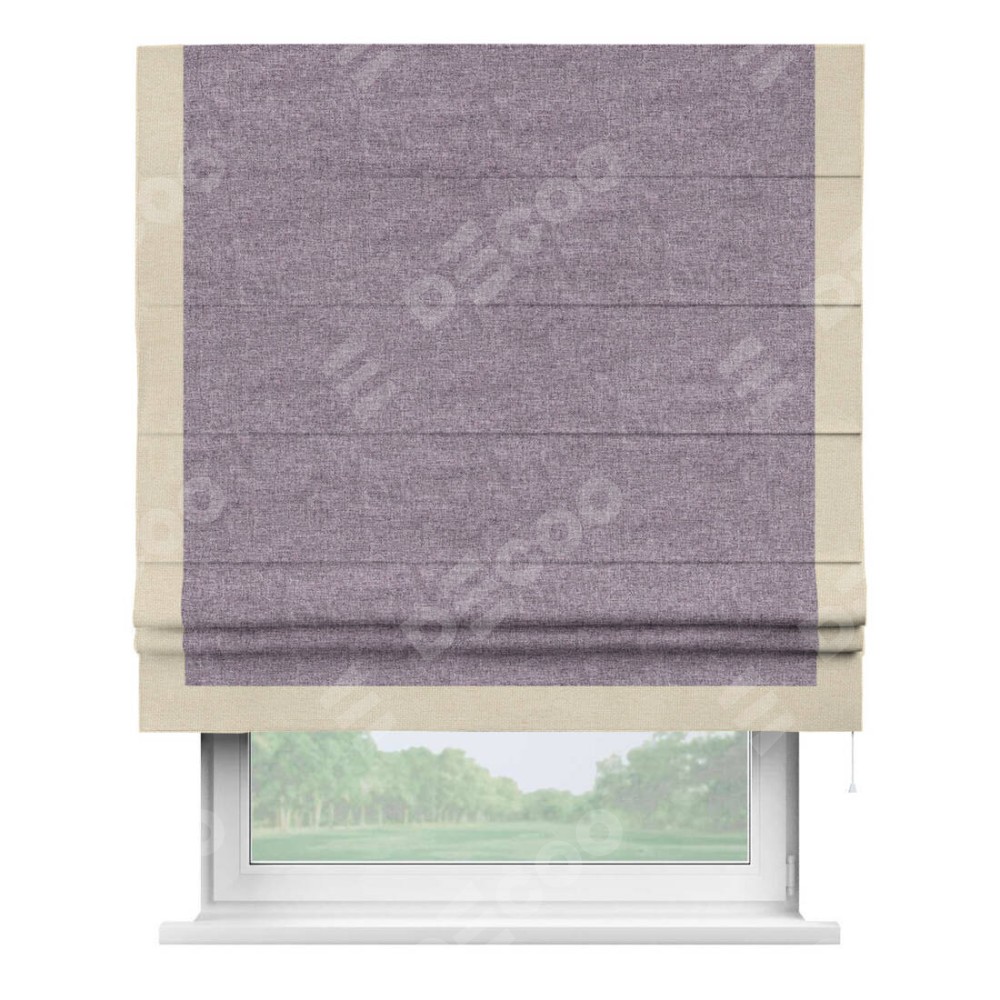 Римская штора с отделкой кантом «Виктория», пошита из ткани лён кашемир фиолетовый, артикул: 17211. представляет собой элегантное решение для оконного оформления. Кант по бокам и снизу шторы добавляет изысканности и аккуратности внешнему виду, подчеркивая линии и форму шторы. Этот элемент декора не только украшает, но и выполняет практическую функцию, защищая края ткани от износа. Кант может быть выполнен в контрастном или гармонирующем цвете, что позволяет добиться различных стилевых эффектов и легко вписать штору в интерьер комнаты.