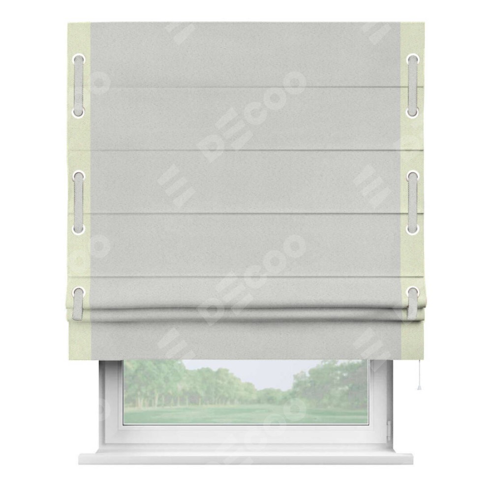 Римская штора «Кортин» с кантом Стрим Дуо (люверсы с пояском) предоставлена в следующих характеристиках: