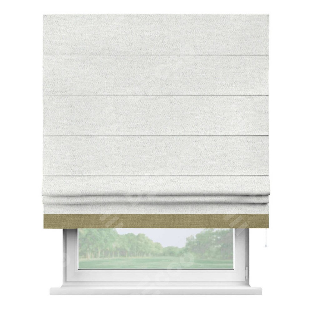 Римская штора пошита из ткани лён шампань, артикул: 91399, с отделкой кантом «Джестер» выделяется своей уникальной особенностью — кантом, расположенным только снизу шторы. Этот дизайн добавляет оригинальности и игривости оконному оформлению, делая акцент на нижней части шторы и создавая интересный визуальный эффект. Отделка кантом на нижнем крае не только служит эстетической функции, но и способствует увеличению прочности и износостойкости ткани в этом месте.