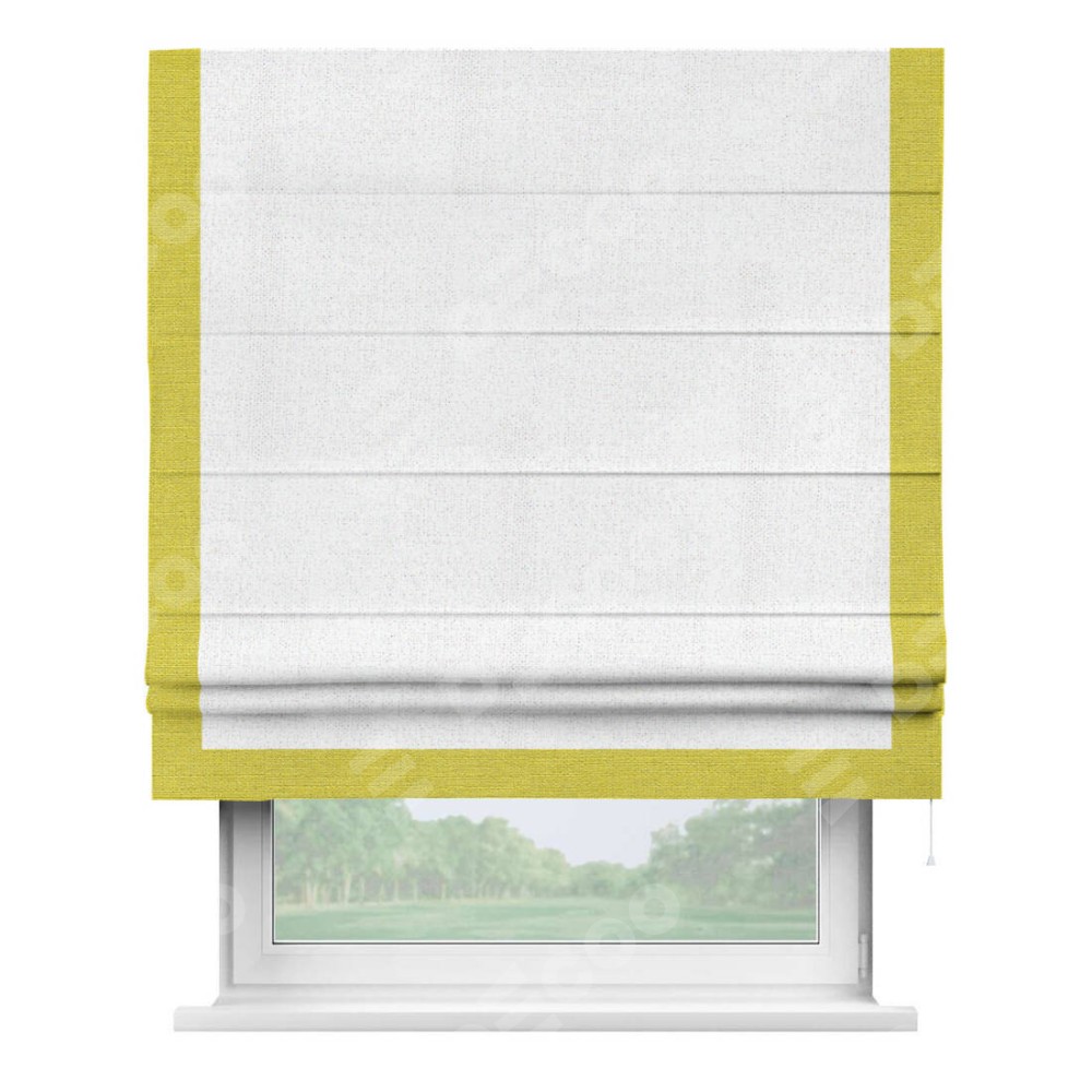 Римская штора с отделкой кантом «Виктория», пошита из ткани лён белоснежный, артикул: 95632. представляет собой элегантное решение для оконного оформления. Кант по бокам и снизу шторы добавляет изысканности и аккуратности внешнему виду, подчеркивая линии и форму шторы. Этот элемент декора не только украшает, но и выполняет практическую функцию, защищая края ткани от износа. Кант может быть выполнен в контрастном или гармонирующем цвете, что позволяет добиться различных стилевых эффектов и легко вписать штору в интерьер комнаты.