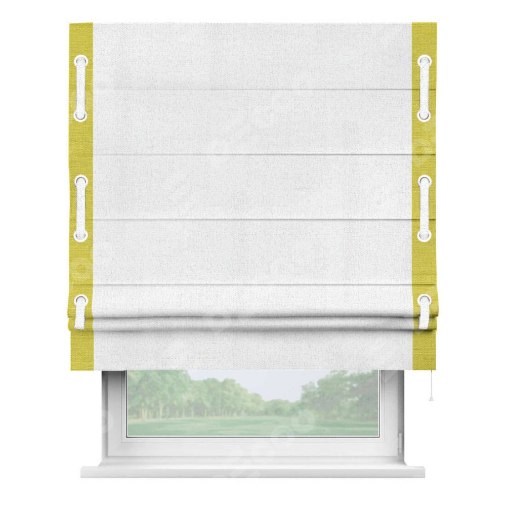 Римская штора «Кортин» для проема, лён белоснежный, с кантом Стрим Дуо (люверсы с пояском)