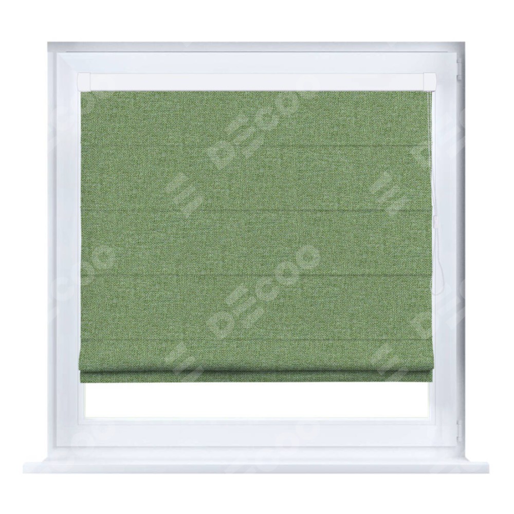 Римская штора производителя «Cortin», устанавливается на створку окна, пошита из ткани лён димаут светло-салатовый, артикул 128528. Штора шьётся по индивидуальным размерам, для данного типа римской шторы возможная ширина от 35 до 150 см., высота до 250 см.