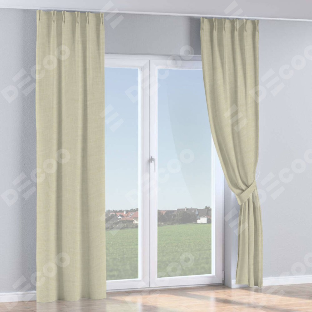 Комплект прямых штор, от производителя «Cortin», пошиты из ткани лён топлёное молоко, артикул ткани 104484. С изнаночной стороны в верхней части штор пристрачивается шторная лента с декоративными складками «Кустик». Для создания элегантных складок рекомендуемый коэффициент 1:2 (на 100 см. ширины проёма 200 см. ширины ткани). Важно! Ширина штор указана без учёта коэффициента сборки!