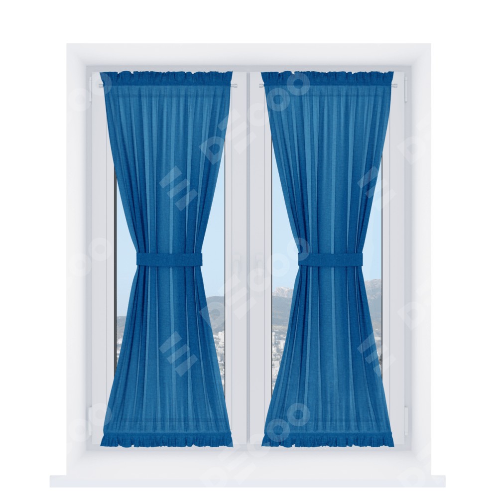 Штора «Песочные часы» производителя «Cortin», используется для створок окон и дверей, пошита из ткани лён синий, артикул ткани 63742.