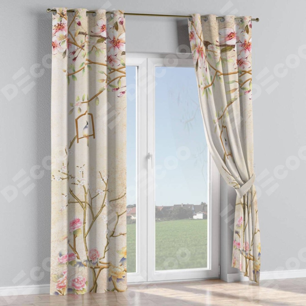 Комплект штор на люверсах «Весенний сад» отлично подойдёт для интерьера в загородный дом, шторы для столовой и шторы для квартиры.