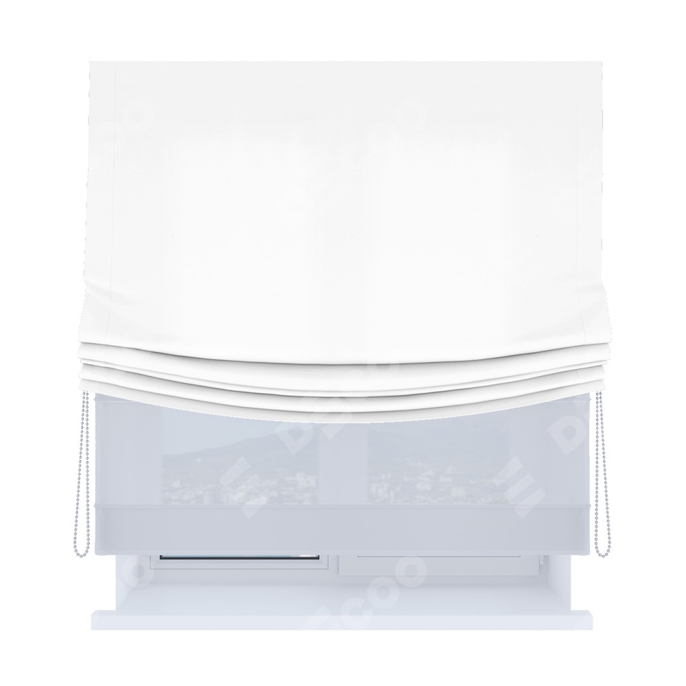Двойная римская штора «День-ночь» от производителя Cortin предназначена для использования в проёмах. Эта штора уникальна тем, что состоит из двух полотен. На лицевой стороне находится вайтаут однотонная белая (артикул: 93935), обеспечивающий эффективное затемнение. В комплект также входит вторая ткань — легкий белый тюль (артикул: V-01), который добавляет изящества и легкости оформлению окна. Кроме того, доступны и другие разновидности ткани тюль, выбор которых доступен по ссылке .