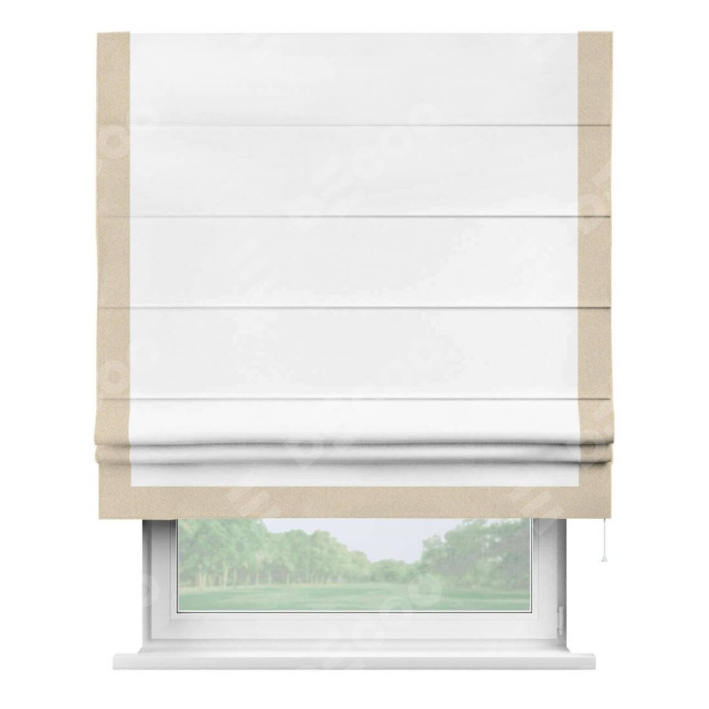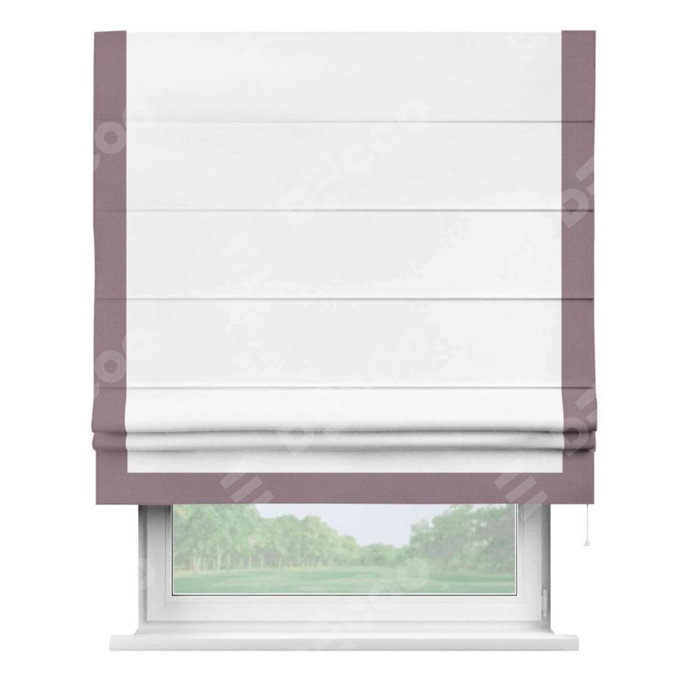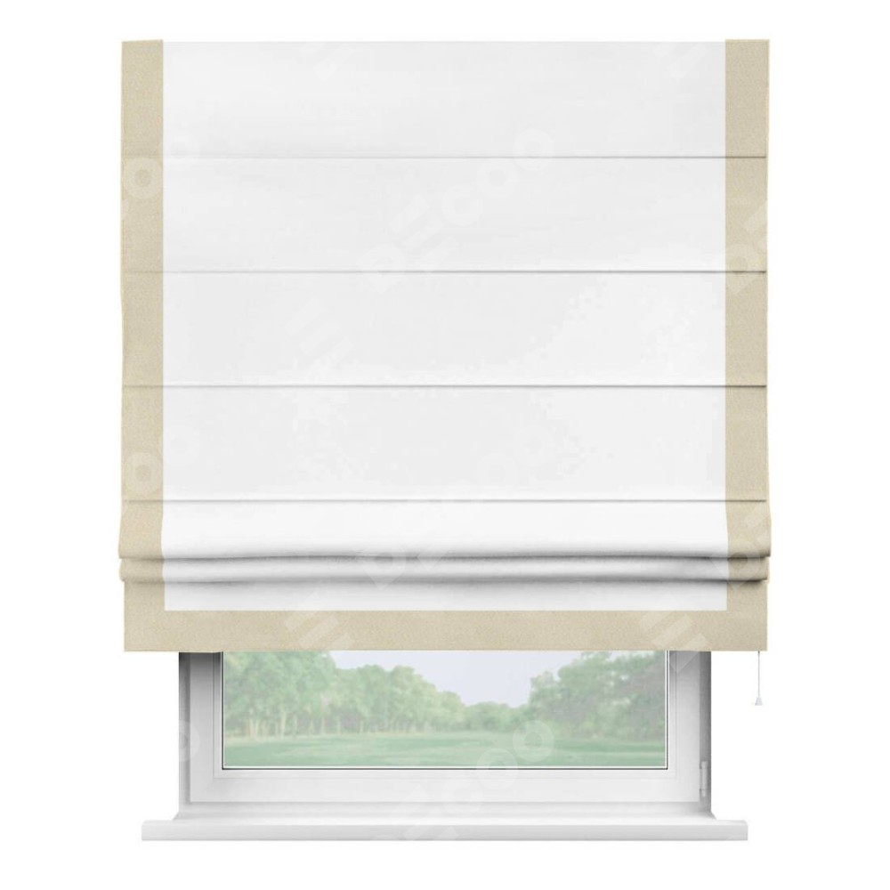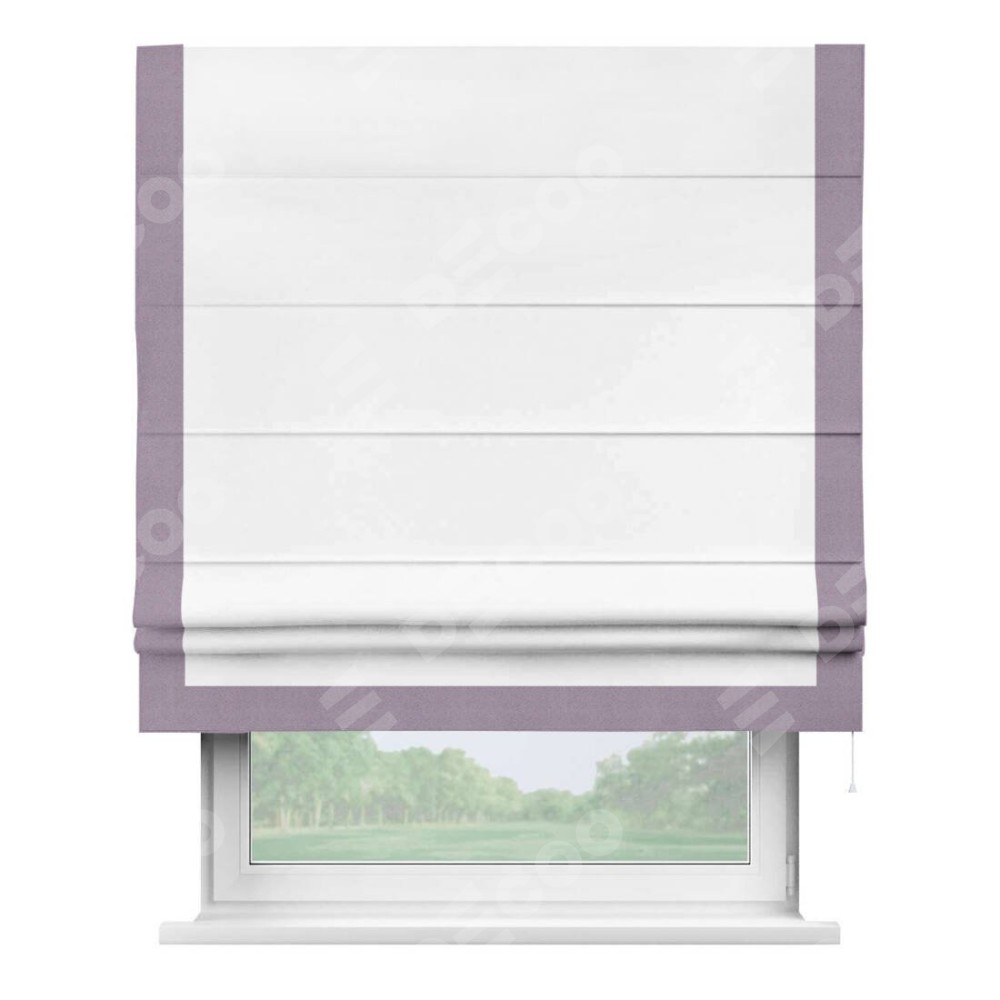 Римская штора «Кортин» для проёма, вайтаут однотонная белая с кантом Виктория