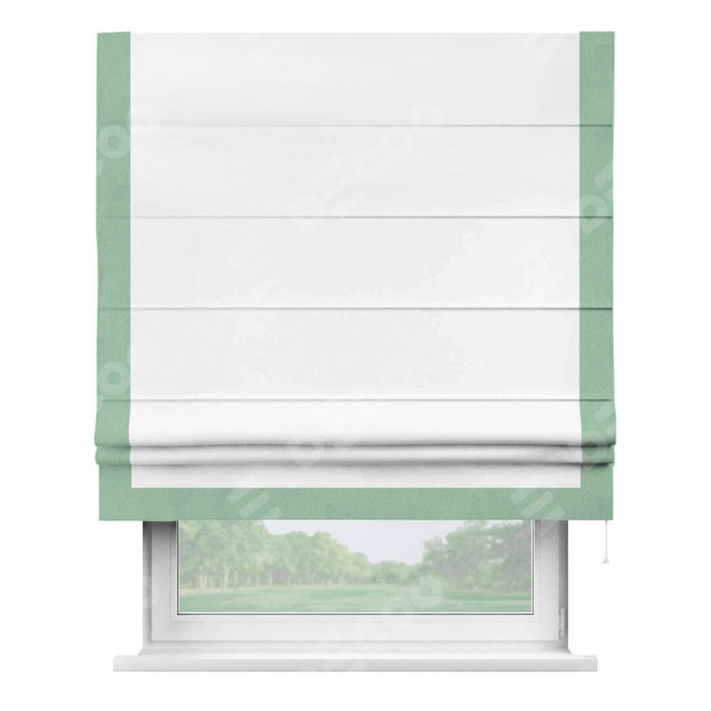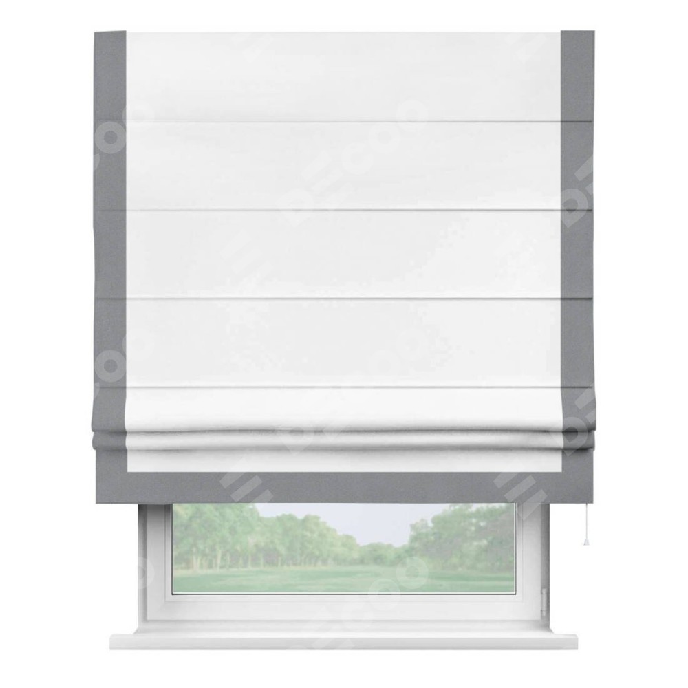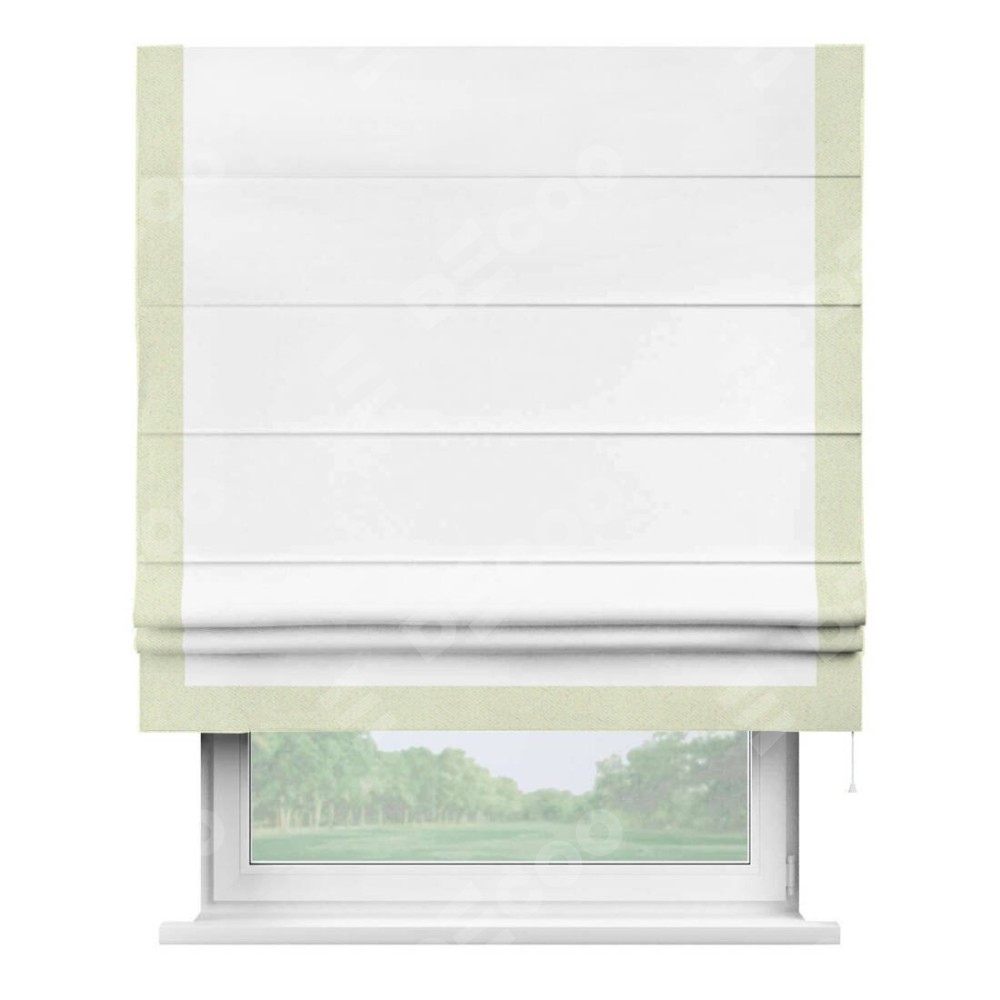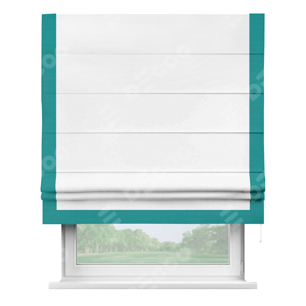 Римская штора «Кортин» для проёма, вайтаут однотонная белая с кантом Виктория