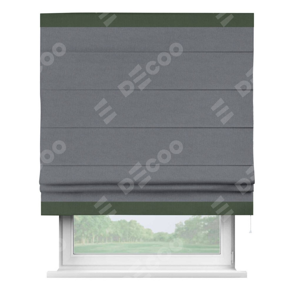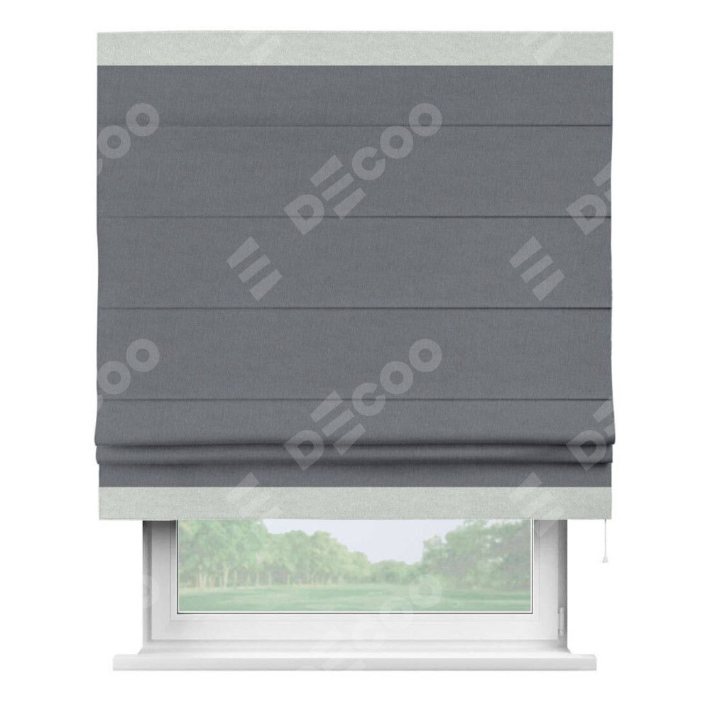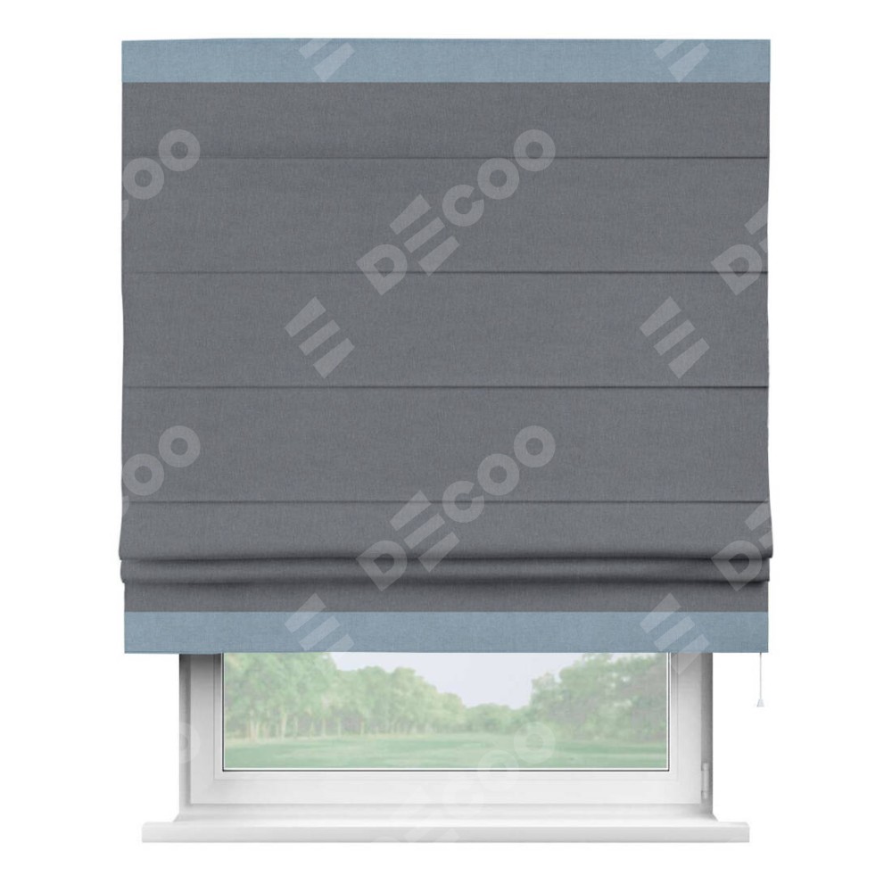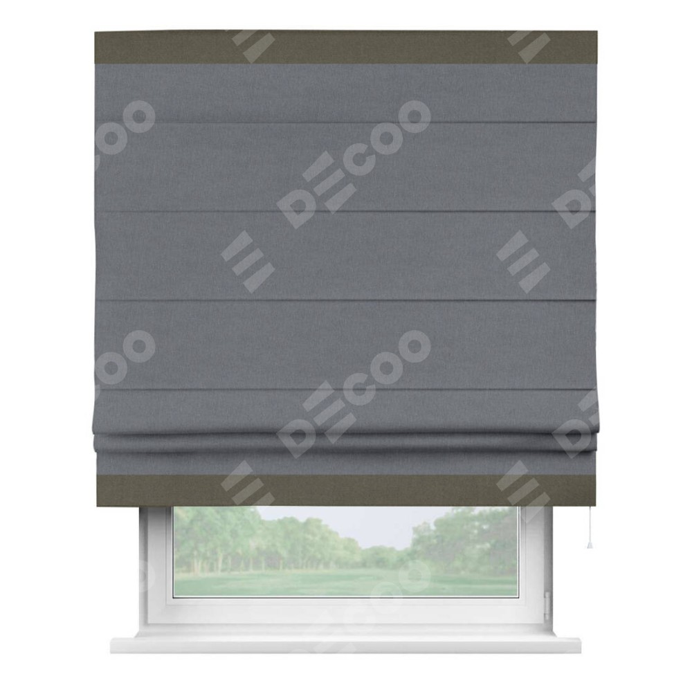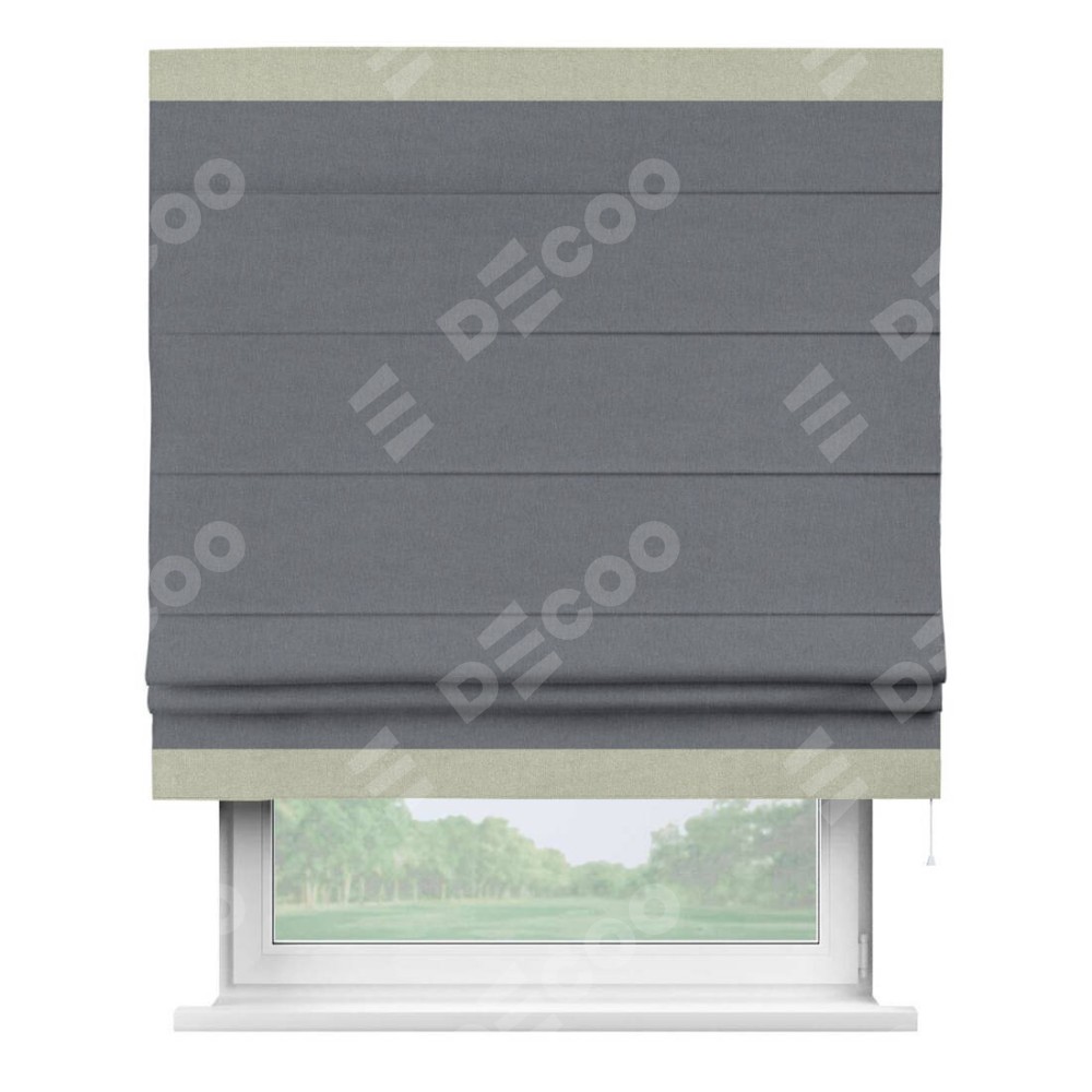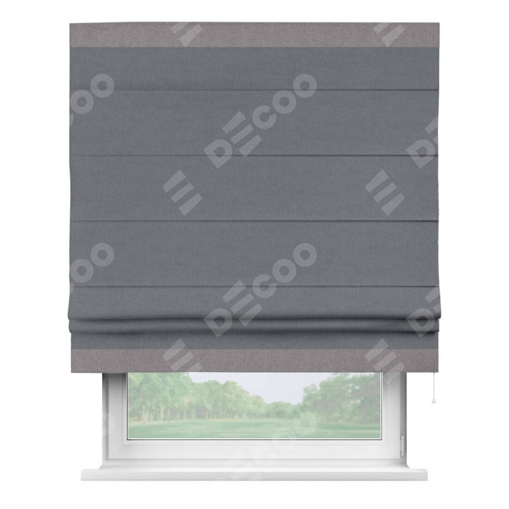Классическая римская штора производителя «Cortin», пошита из ткани лён блэкаут тёмно-серый, артикул: 139663. Имеет универсальный механизм и подходит для монтажа: на потолок, на стену и в нишу.