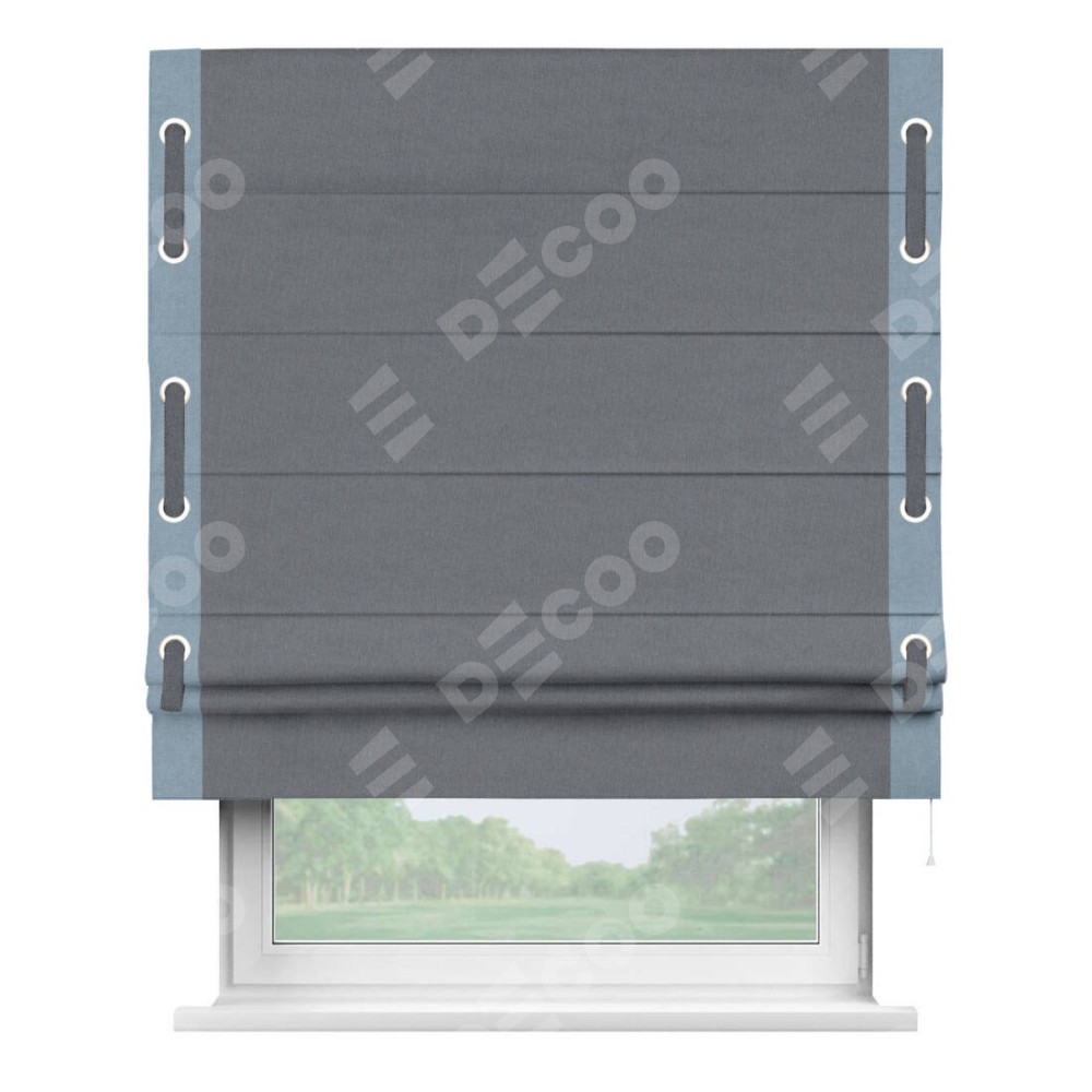 Классическая римская штора производителя «Cortin», пошита из ткани лён блэкаут тёмно-серый, артикул: 139663. Имеет универсальный механизм и подходит для монтажа: на потолок, на стену и в нишу.