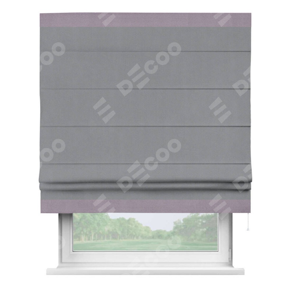 Римская штора «Кортин» для проема, блэкаут однотонный серый с кантом Горизонт