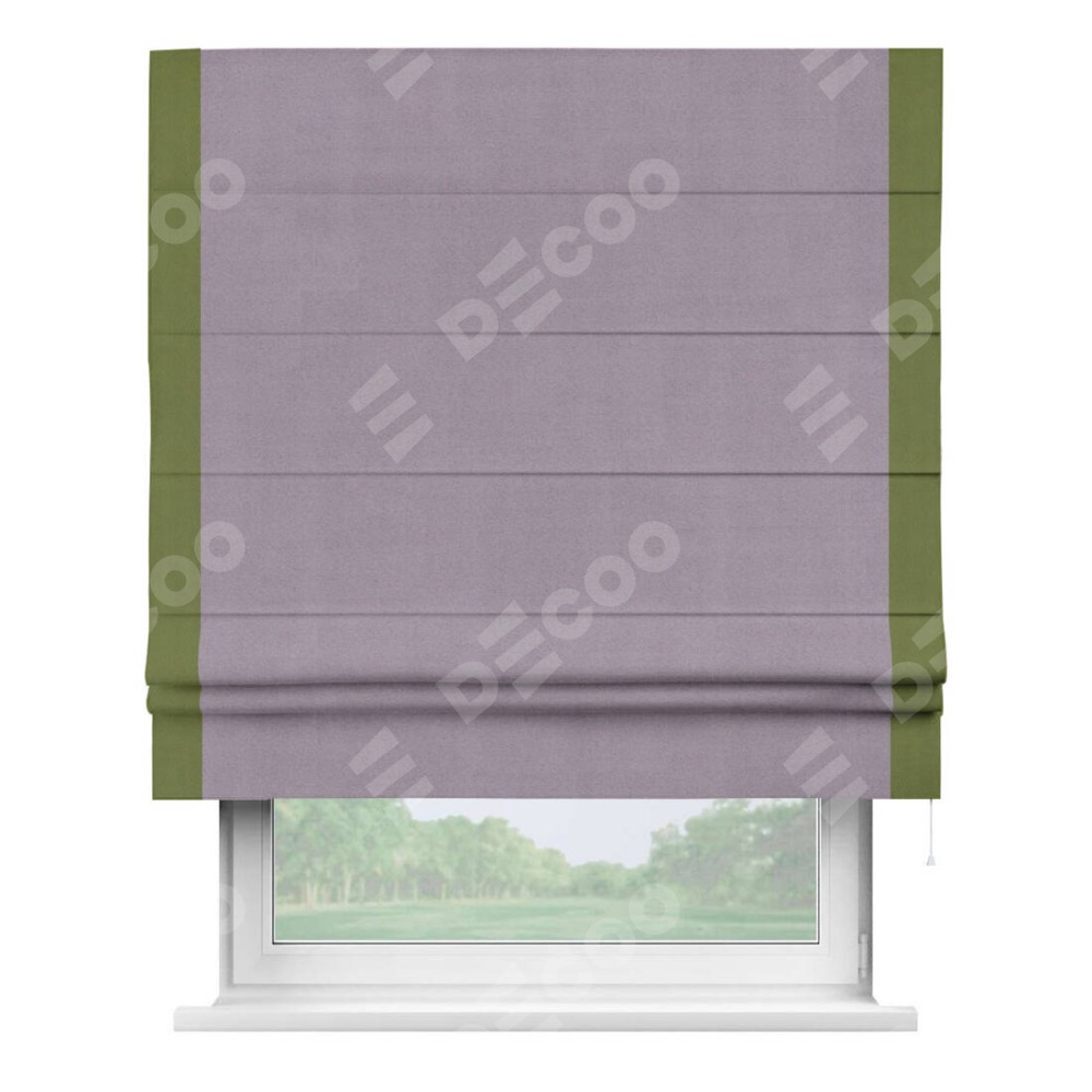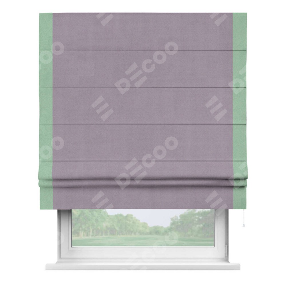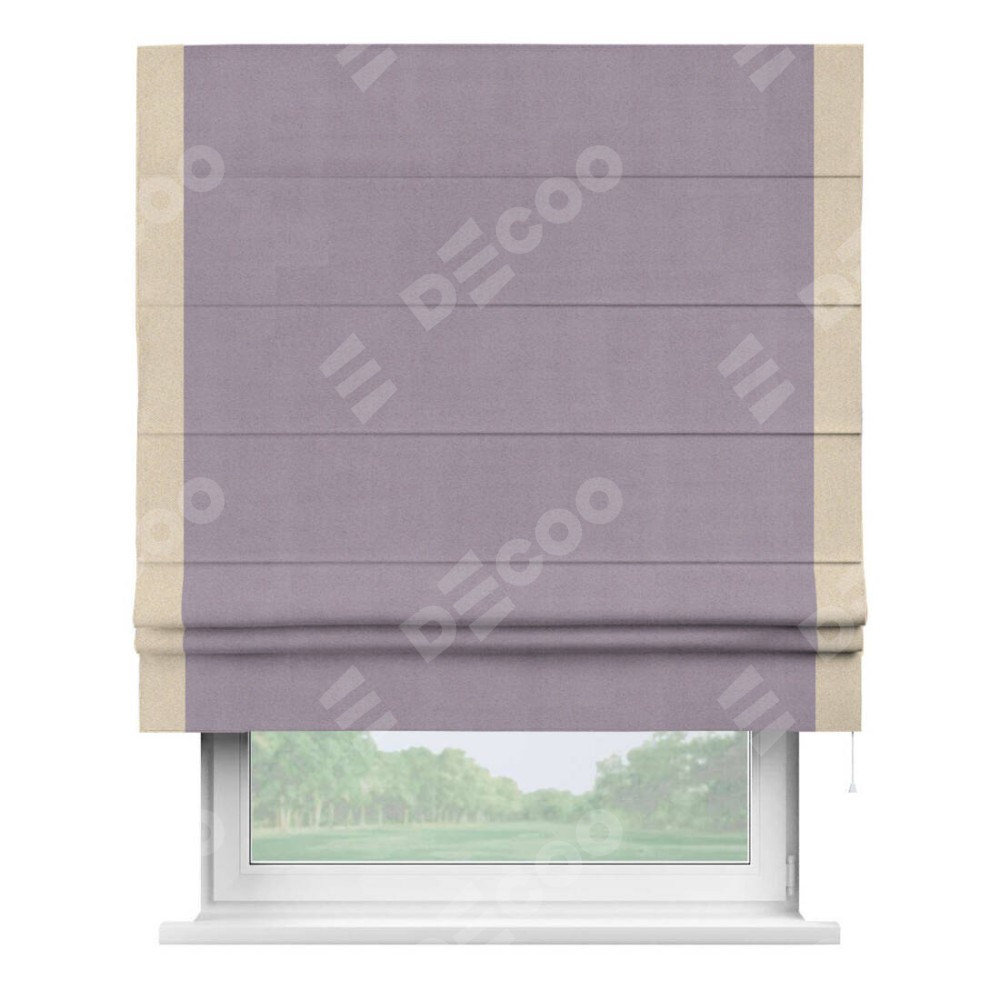Римская штора «Кортин» для проёма, блэкаут однотонный лиловый с кантом Стрим Дуо