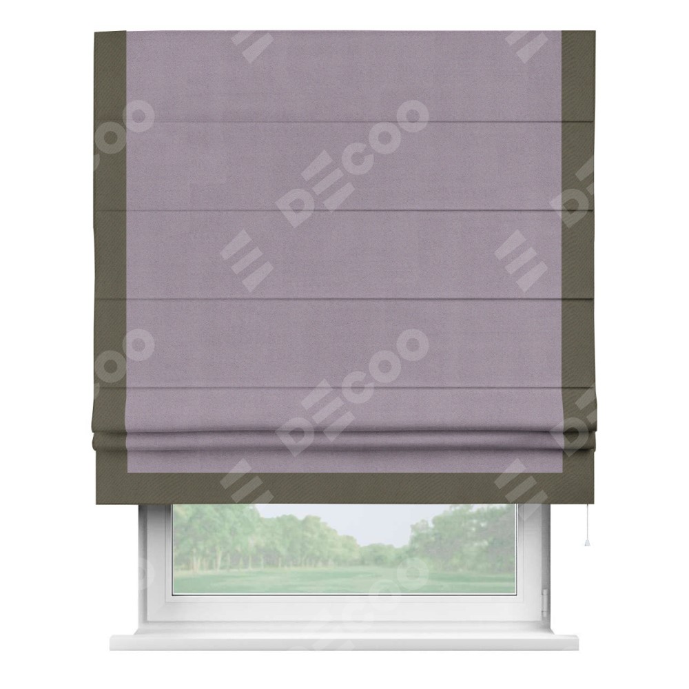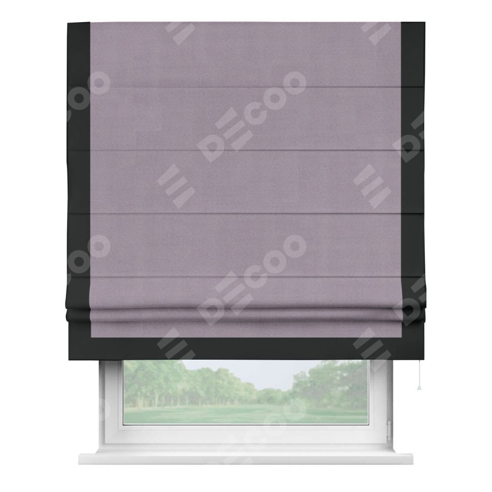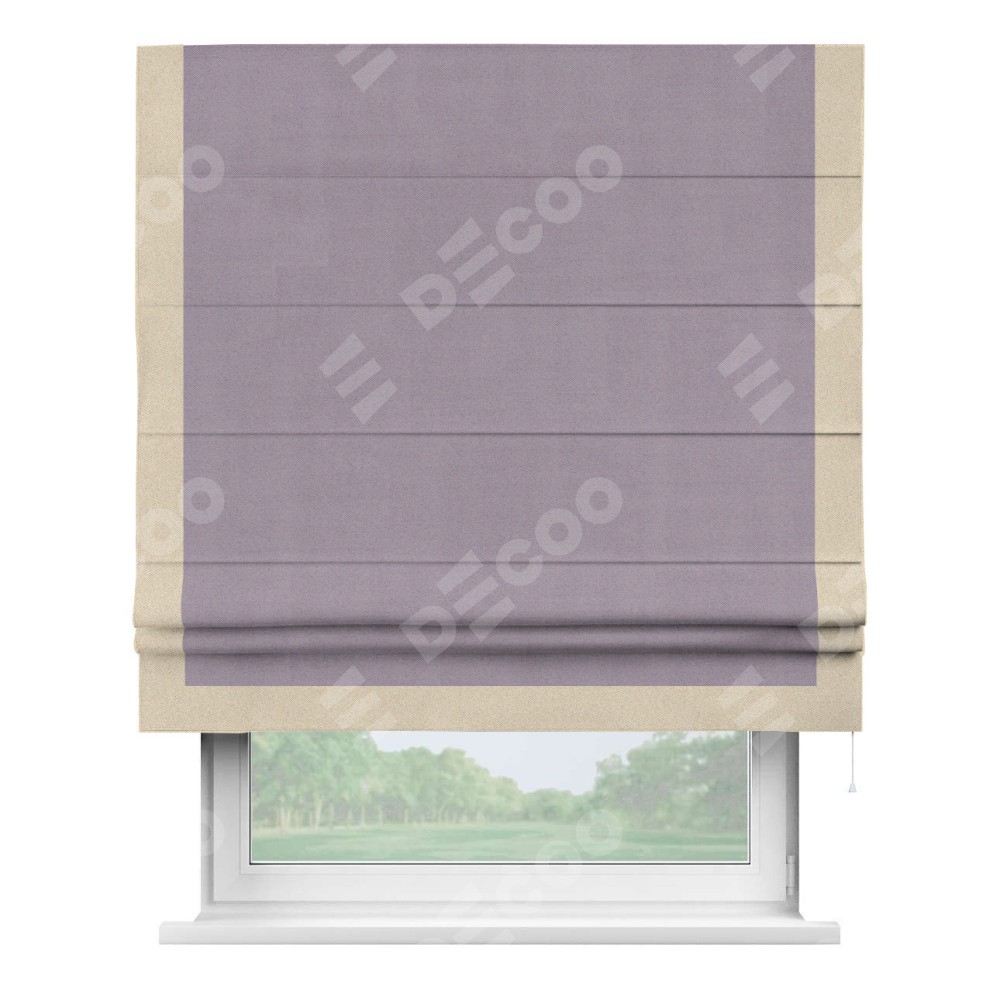 Римская штора «Кортин» для проёма, блэкаут однотонный лиловый с кантом Виктория