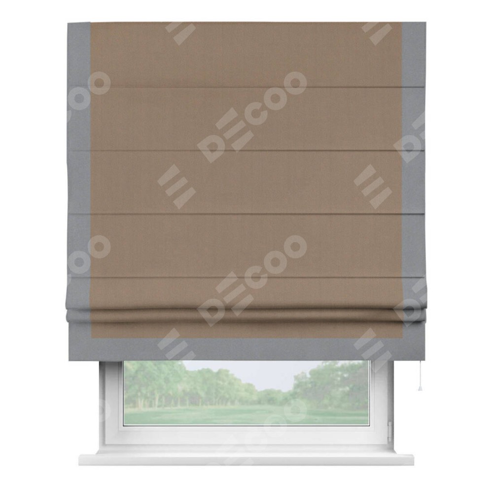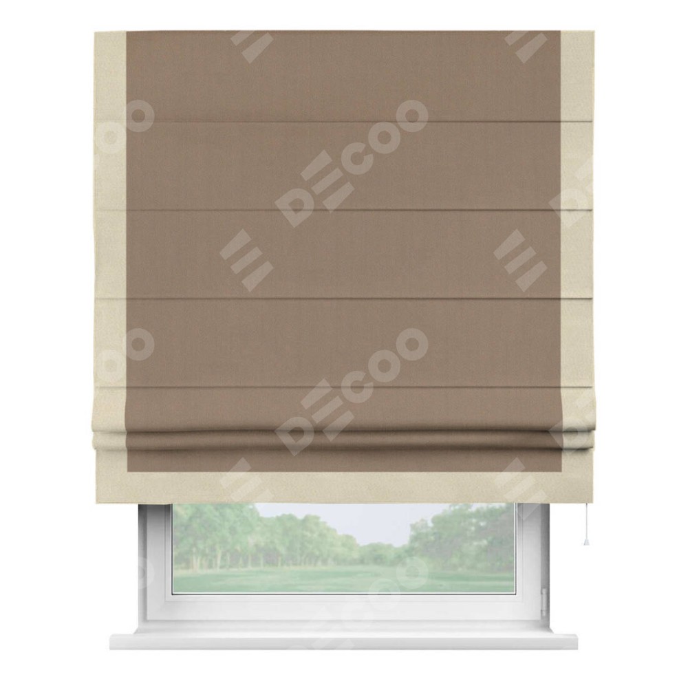 Римская штора «Cortin» для проёма, ткань блэкаут однотонный кофейно-бежевый с кантом Виктория