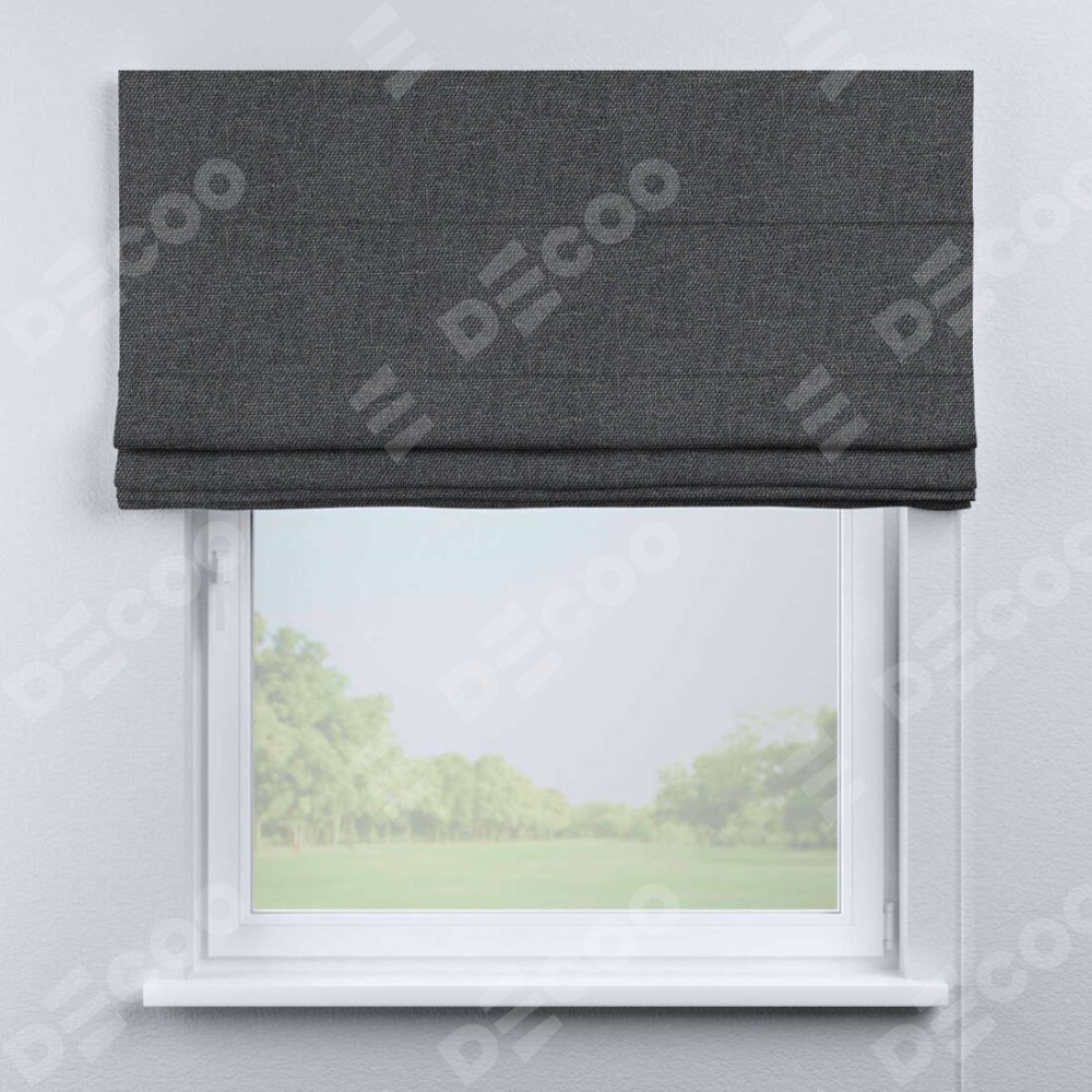 Классическая римская штора производителя «Cortin», пошита из ткани лён димаут графит, артикул: 140644. Имеет универсальный механизм и подходит для монтажа: на потолок, на стену и в нишу.