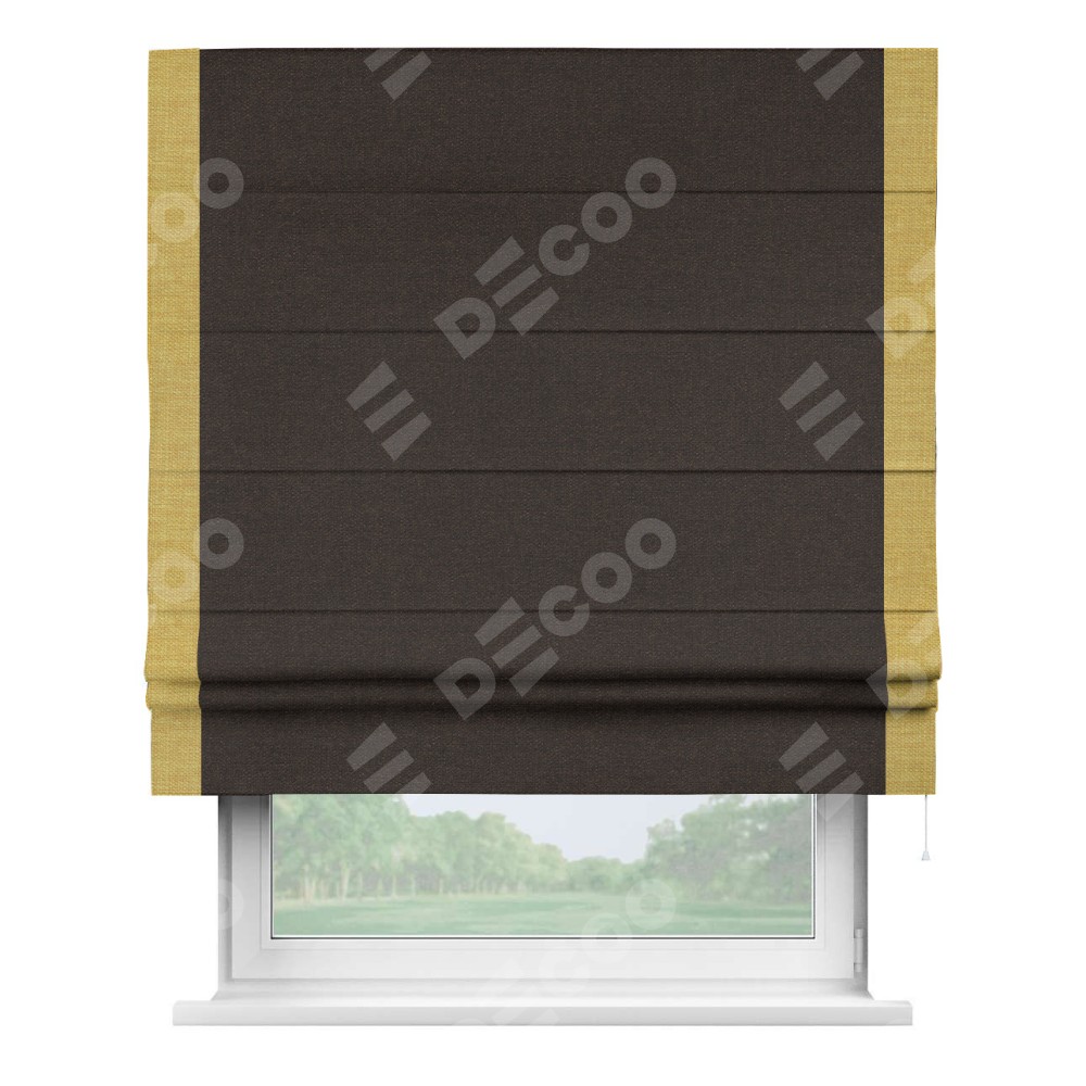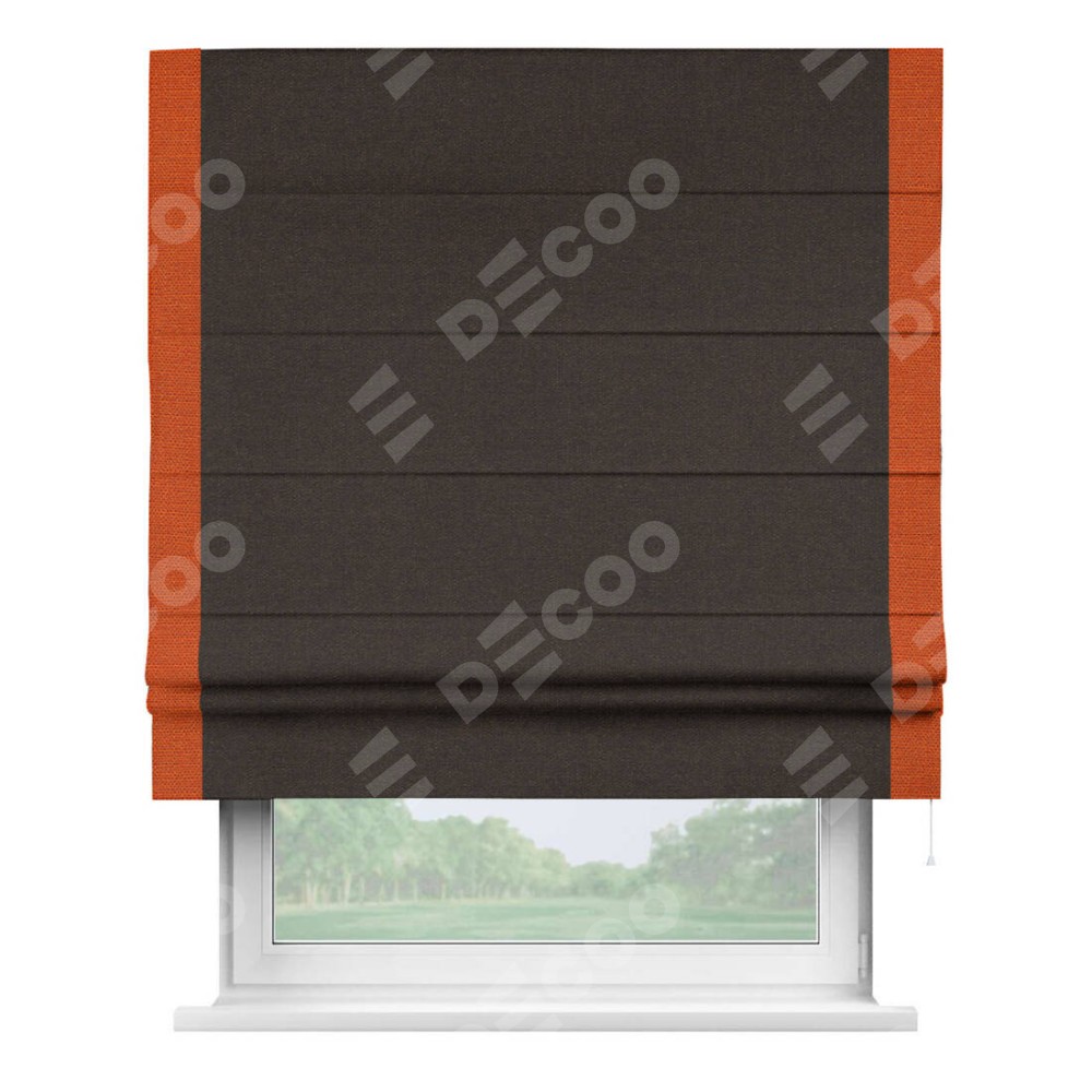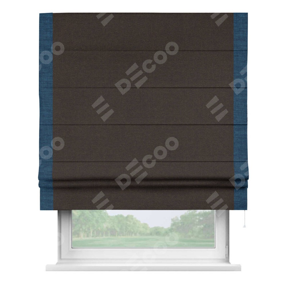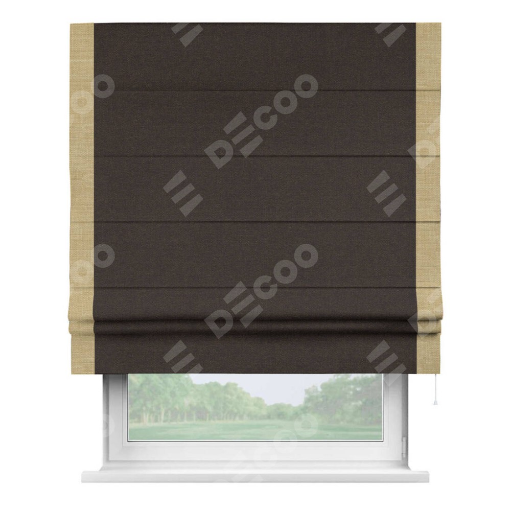 Римская штора «Кортин» для проёма, лён тёмно-коричневый, с кантом Стрим Дуо