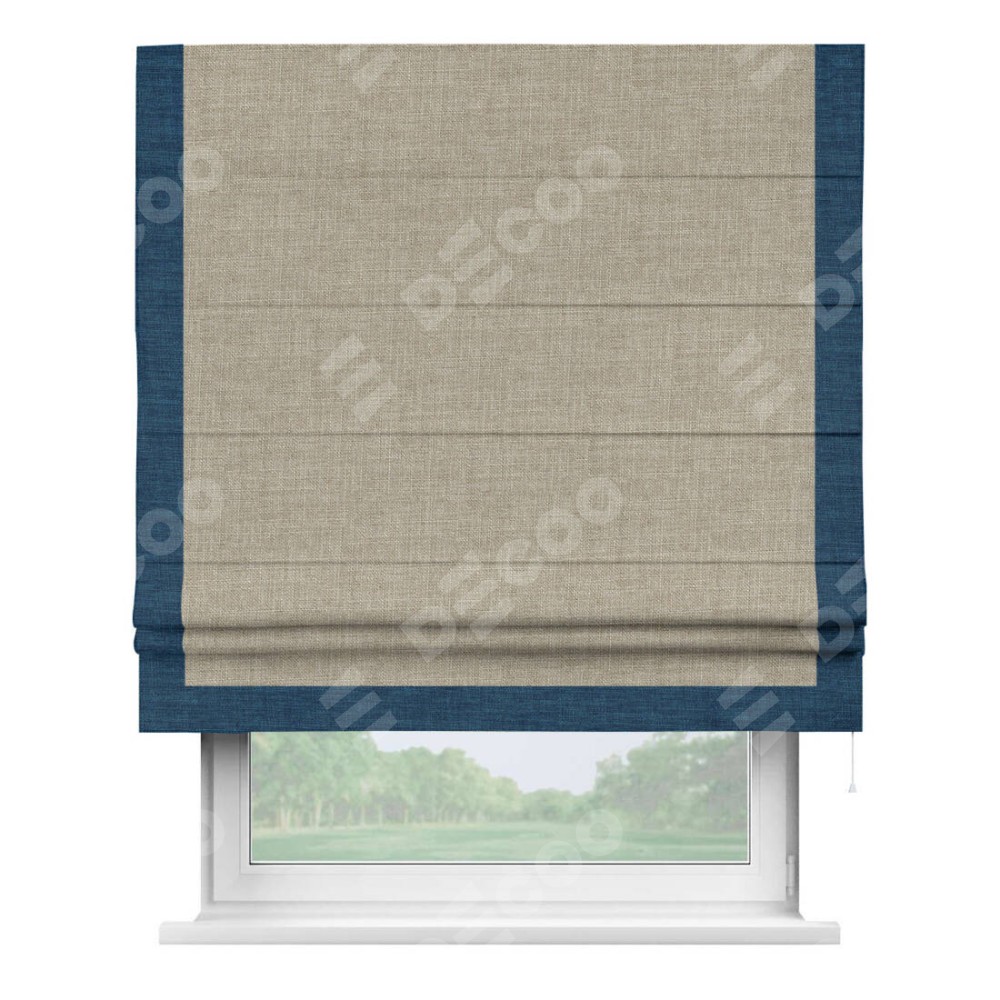 Римская штора «Кортин» для проёма, лён бежевый, с кантом Виктория