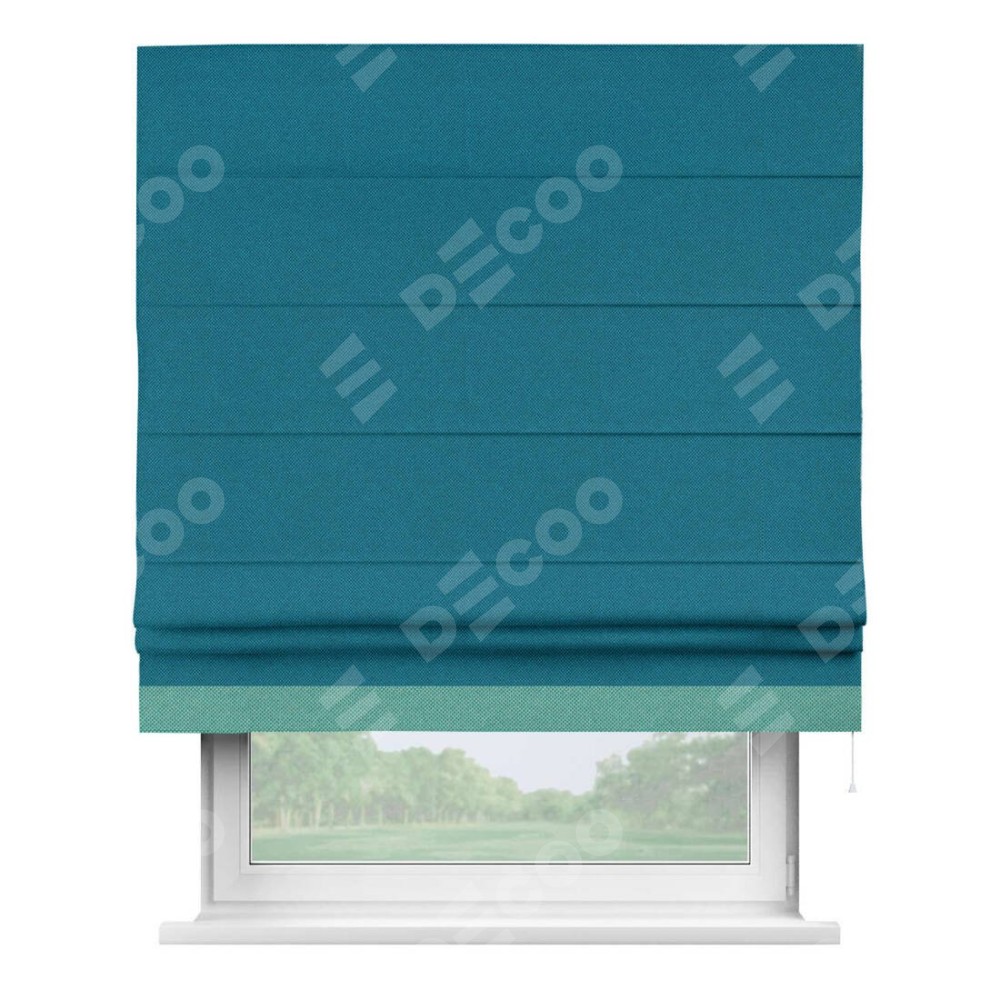 Римская штора «Кортин» с кантом Джестер, для проема, ткань лён димаут, светло-синий