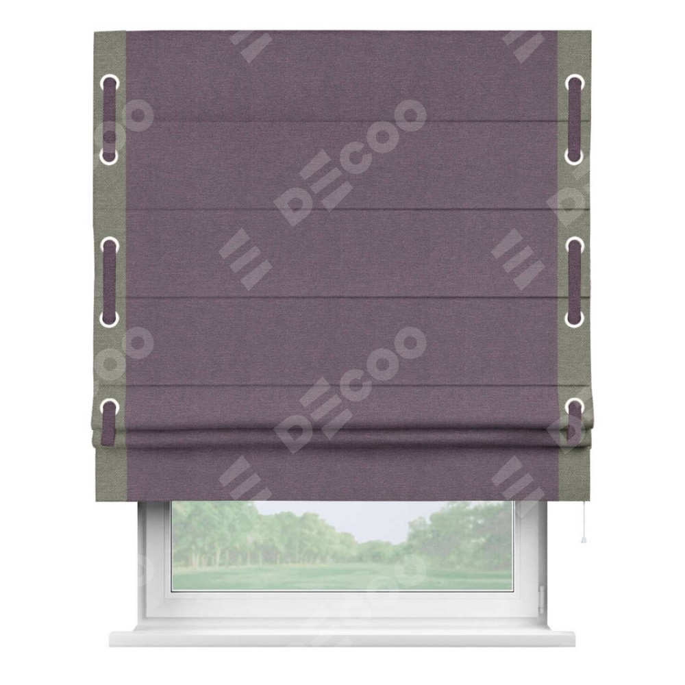 Римская штора «Кортин» с кантом Стрим Дуо (люверсы с пояском), для проема, ткань лён димаут, светло-фиолетовый