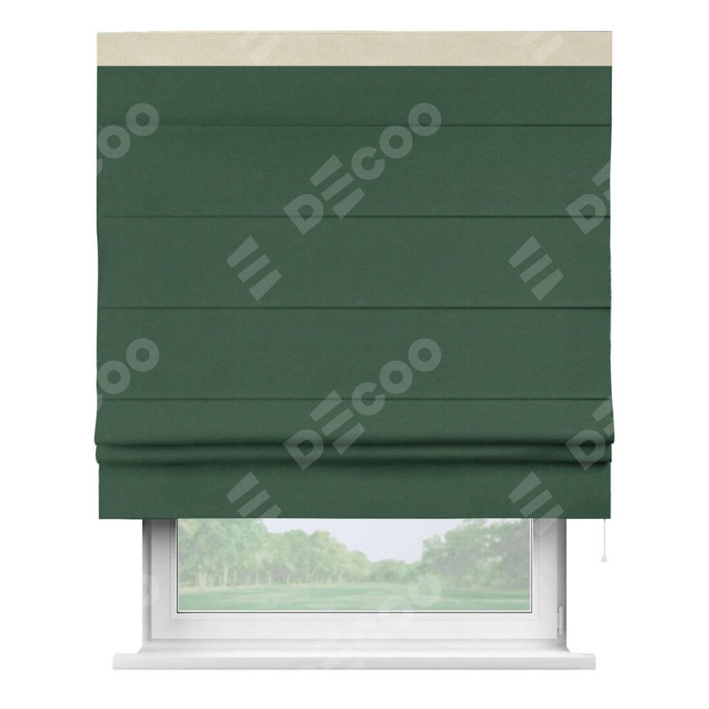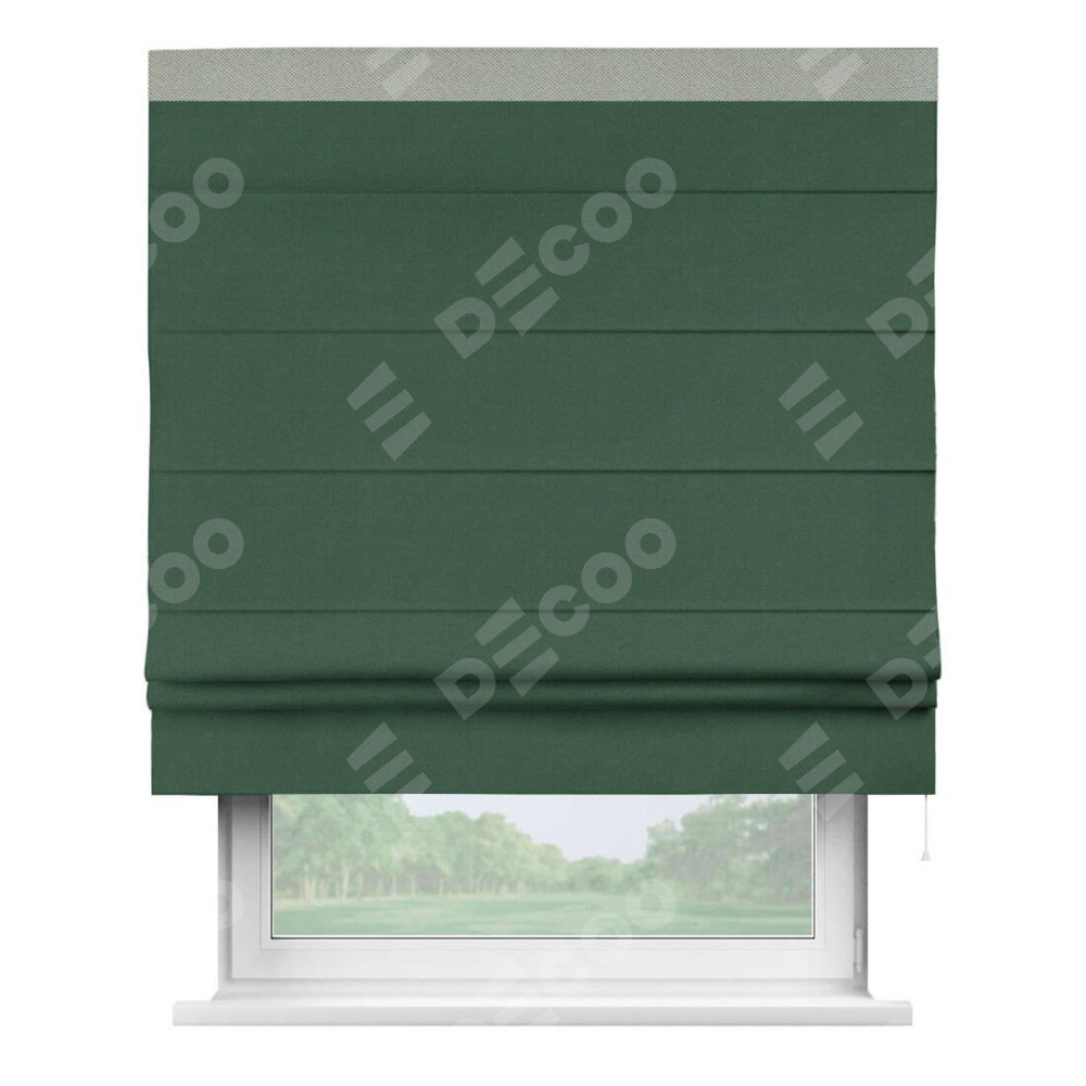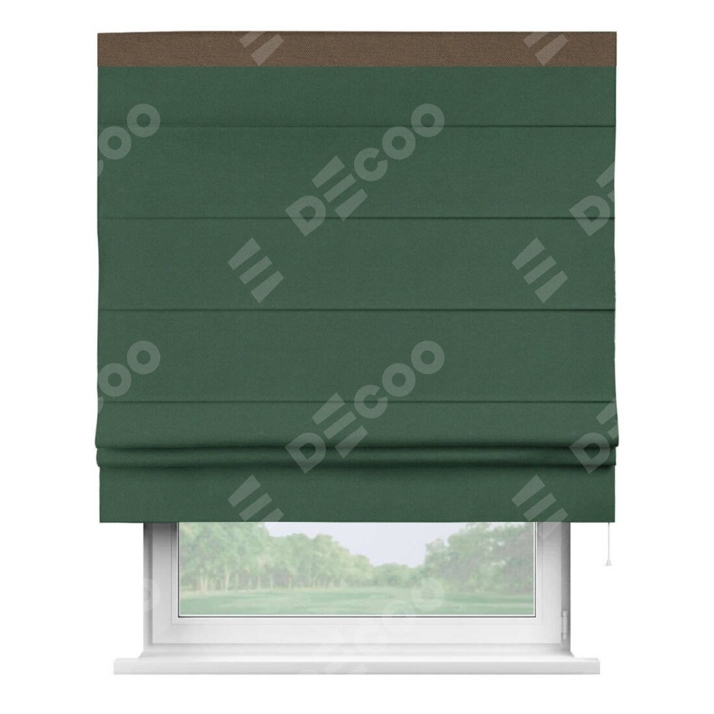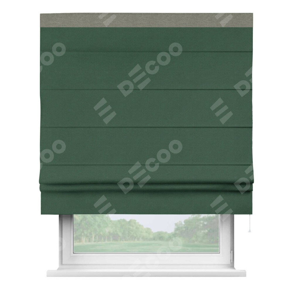 Римская штора «Кортин» с кантом Кинг, для проема, ткань лён димаут, тёмно-зелёный