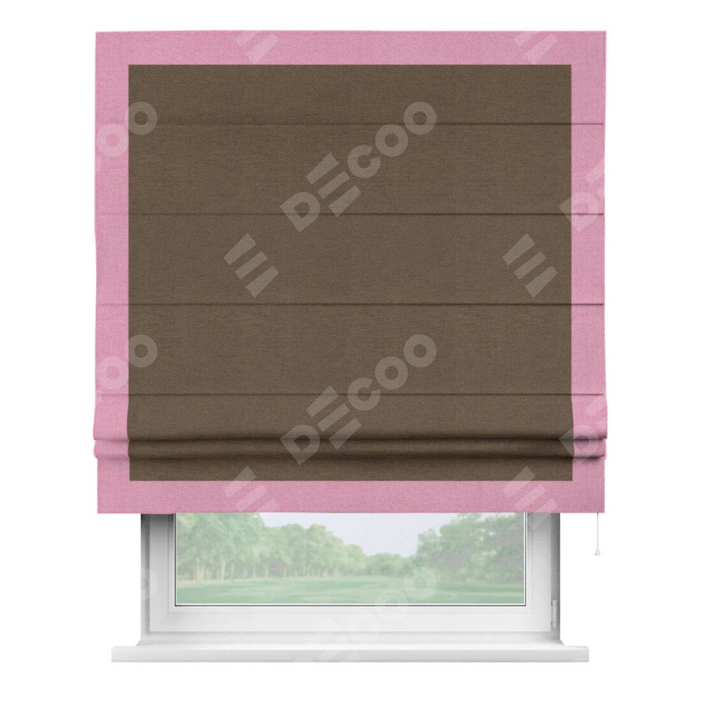 Римская штора «Кортин» с кантом Чесс, для проема, ткань лён димаут, тёмно-коричневый