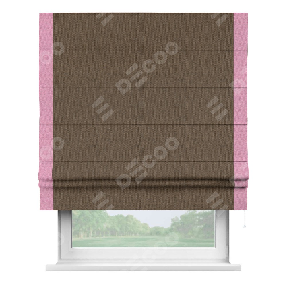 Римская штора «Кортин» с кантом Стрим Дуо, для проема, ткань лён димаут, тёмно-коричневый