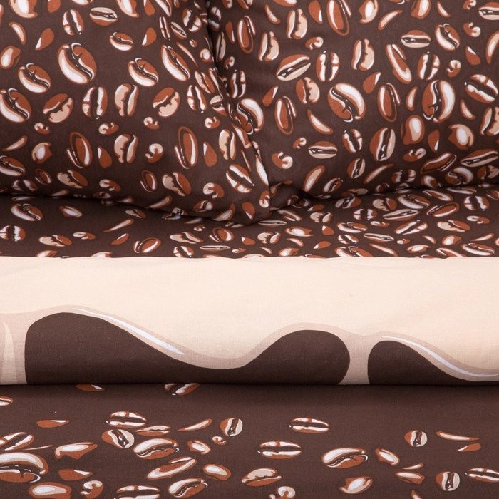Постельное бельё «Этель» 1,5 сп. Кофе 143×215 см, 150×214 см, 70×70 см — 2 шт., 100% хлопок, бязь 125 г/м²