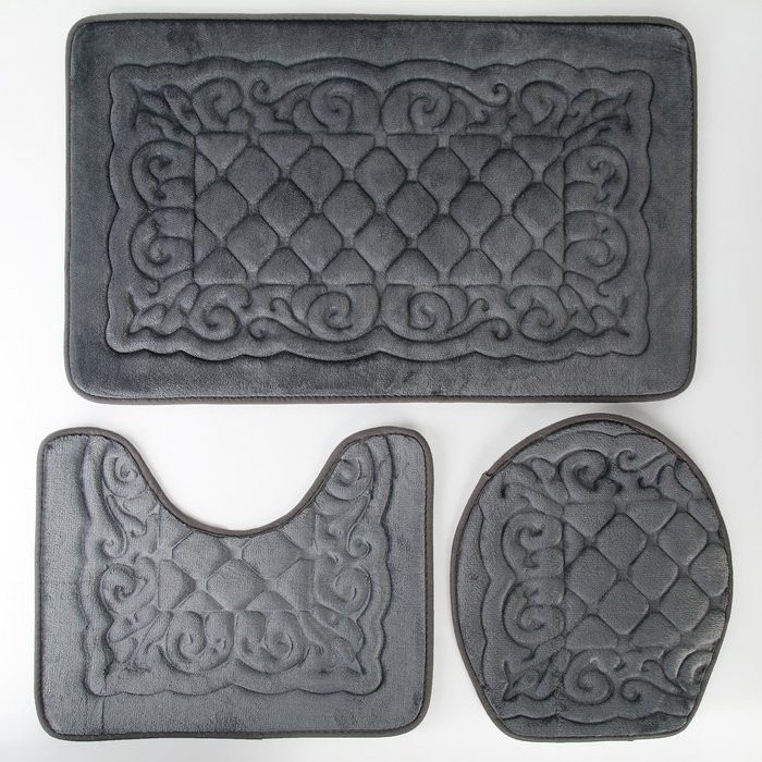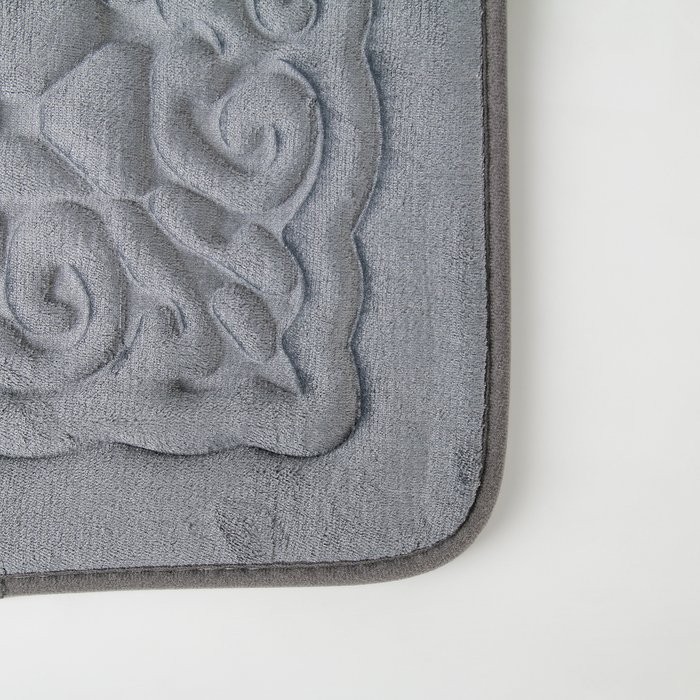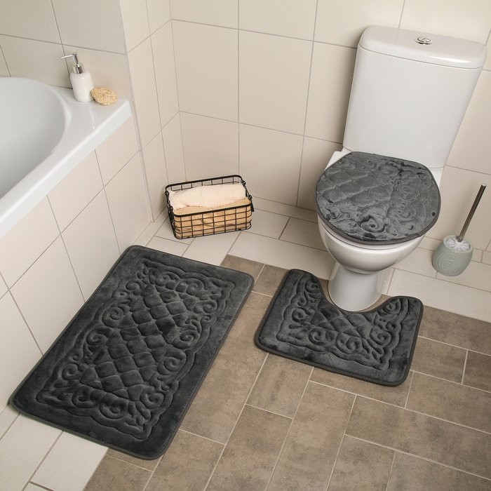 Набор ковриков для ванны и туалета Доляна «Узор», 3 шт: 38×43, 40×50, 50×80 см, цвет серый