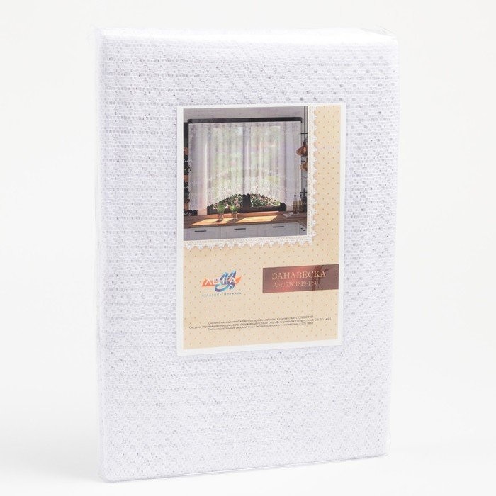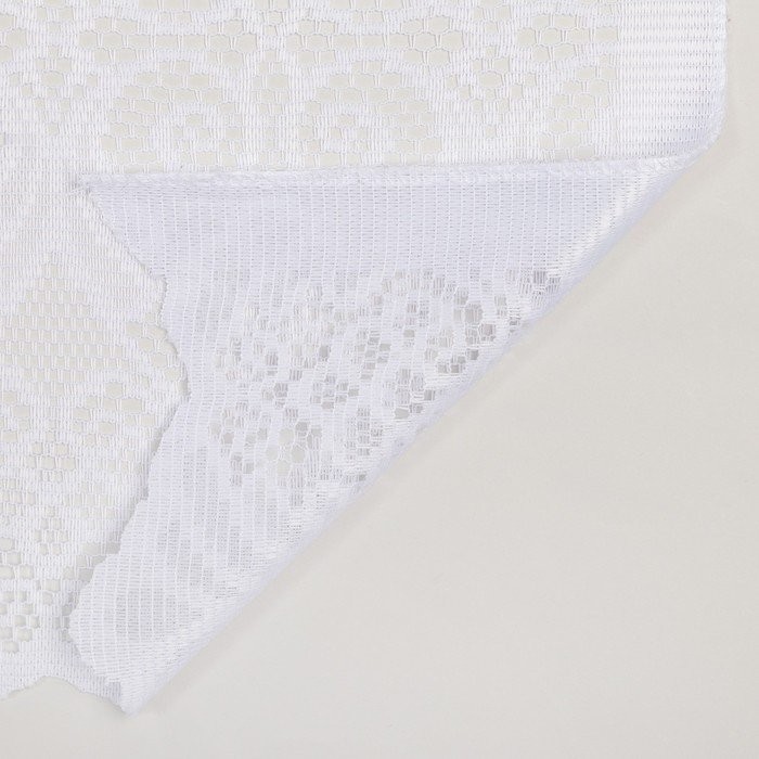 Тюль кухонная со шторной лентой, 285×165 см, белый, 100% п/э сделает внешний вид обеденной зоны полным и законченным. Изящное оформление в виде причудливых узоров подчеркнёт ваш изысканный стиль и утончённый вкус.