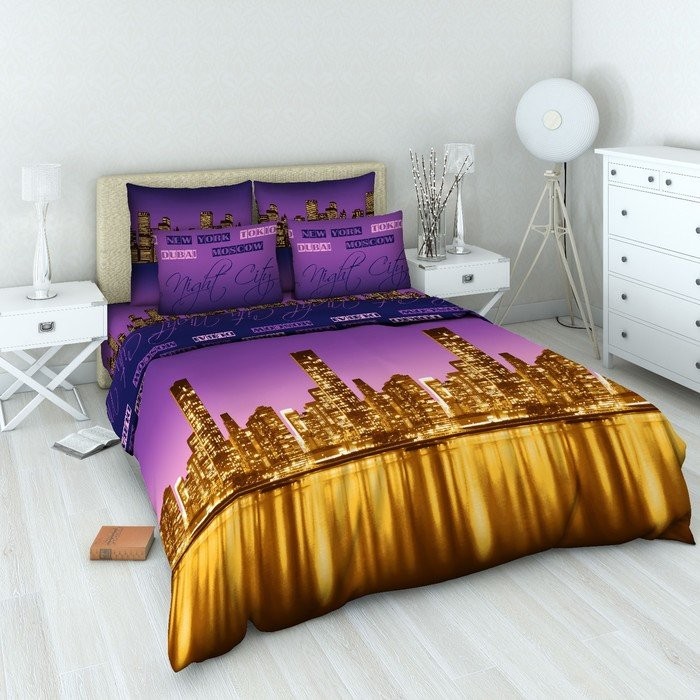Постельное бельё 2 сп. «Василиса» Ночной город 175×215 см, 200×220 см, 70×70 см — 2 шт.