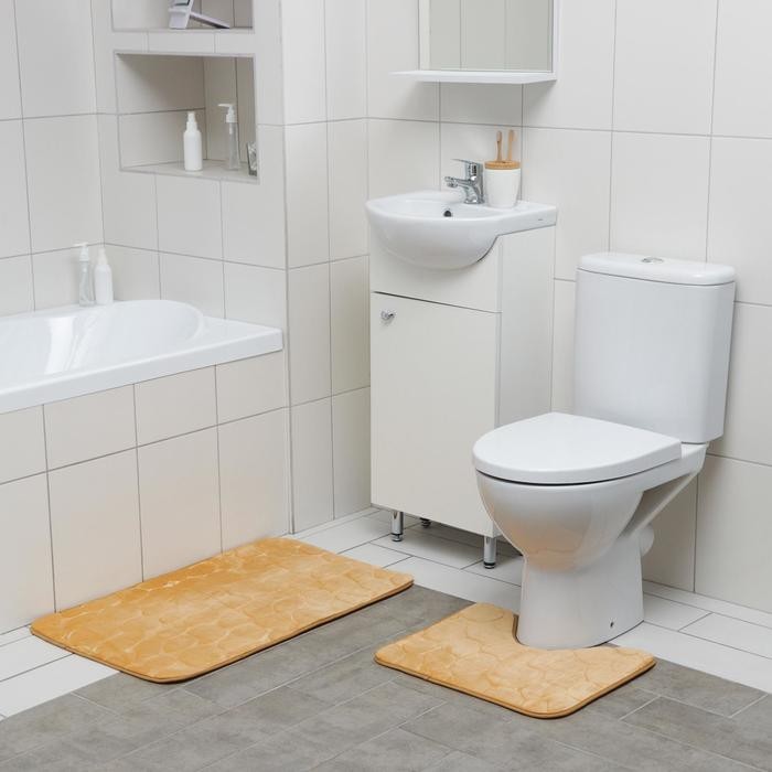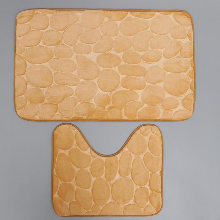 Набор ковриков для ванны и туалета Доляна «Камни», объёмные, 2 шт: 40×50, 50×80 см, цвет бежевый
