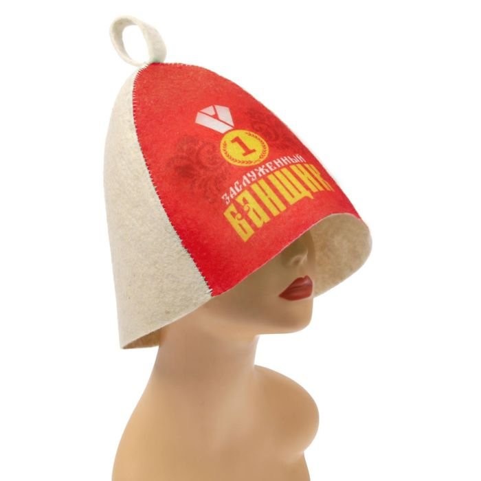 Шапка для бани с цветным клином «Заслуженный банщик»