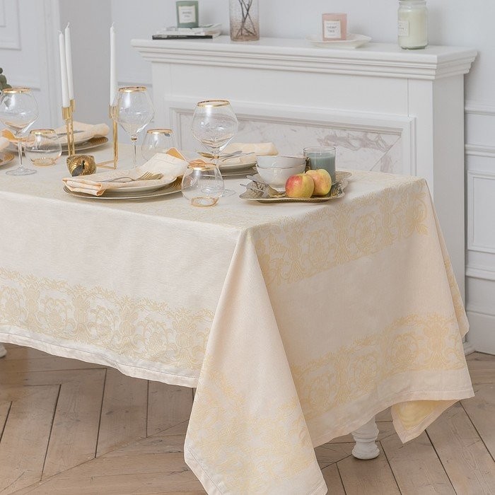 Столовый набор «Этель» (скатерть 150×300 см, салфетки 45×45 см — 12 шт.) цвет шампань, хл. с ВМГО