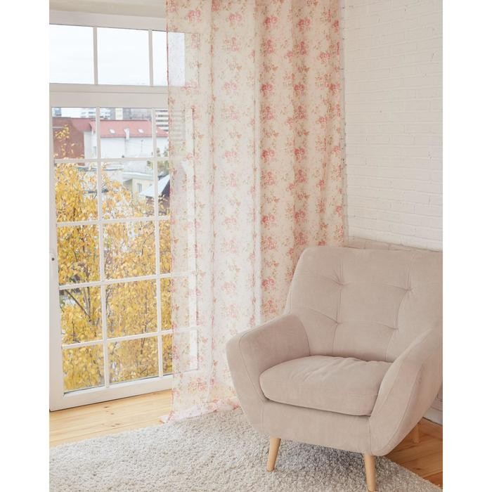 Штора тюлевая «Этель» 250×270 см Нежные цветы без утяжелителя, 100% п/э