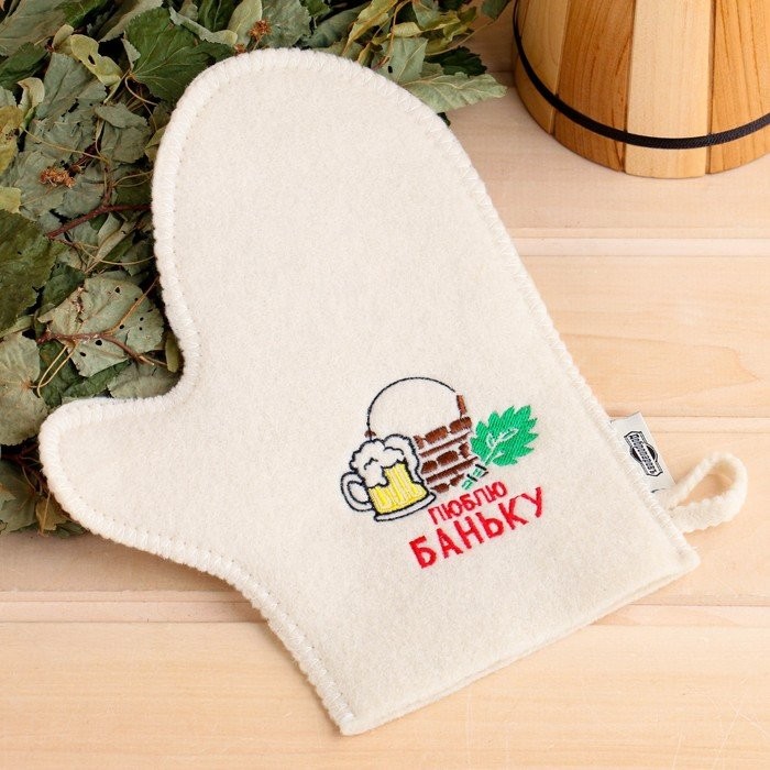 Рукавица для бани с вышивкой «Люблю баньку», первый сорт
