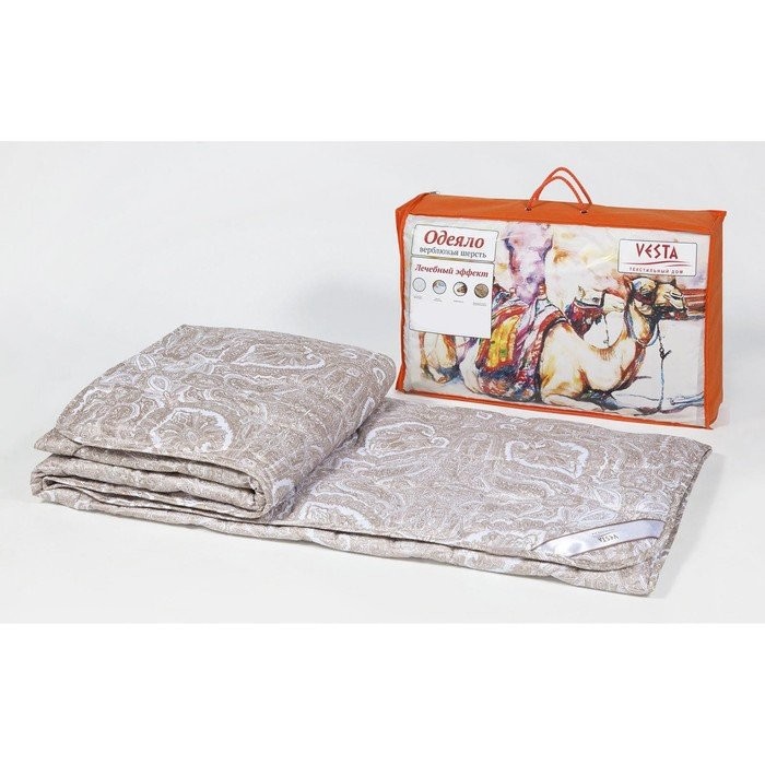 Одеяло зимнее 220×205 см, шерсть верблюда, ткань тик, п/э 100%