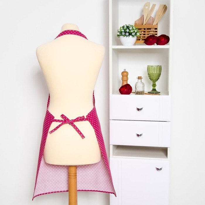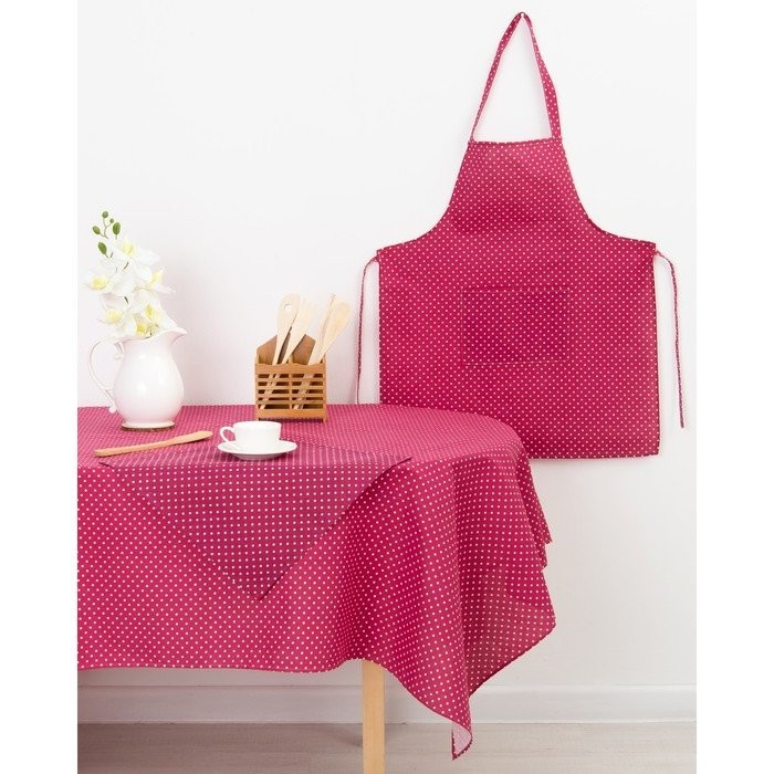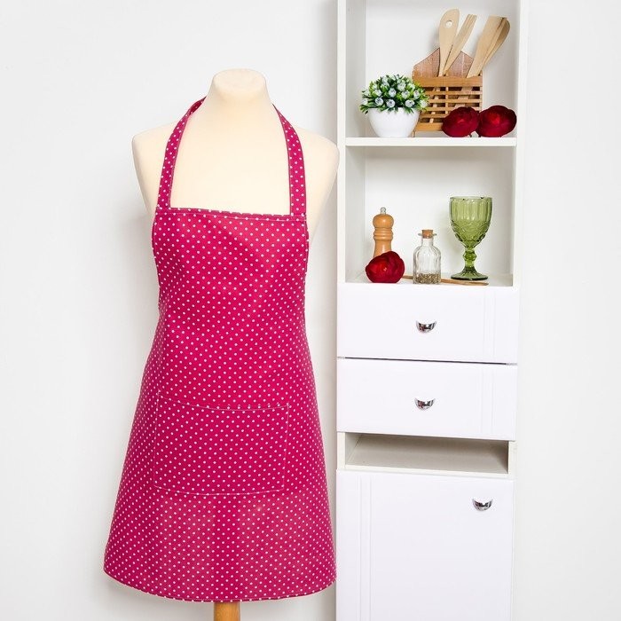 Фартук Доляна 60х70см, Горох красн, 100%пэ, рогожка 200 гр/м
