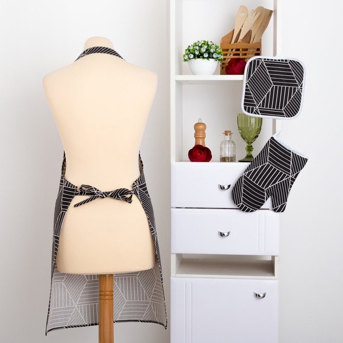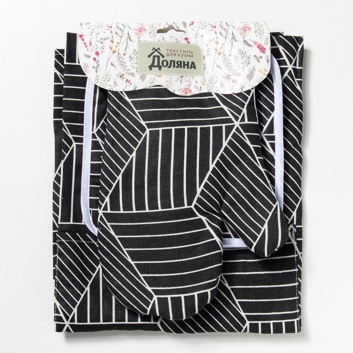 Набор Доляна фартук/прихватка/варежка, Тренд черн, 100%пэ, рогожка 200 гр/м