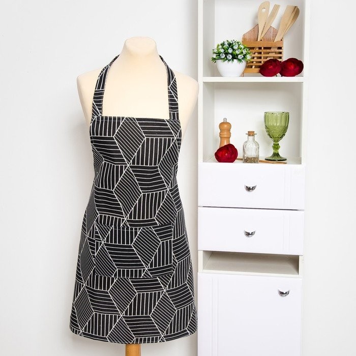 Фартук Доляна 60х70см, Тренд черн, 100%пэ, рогожка 200 гр/м
