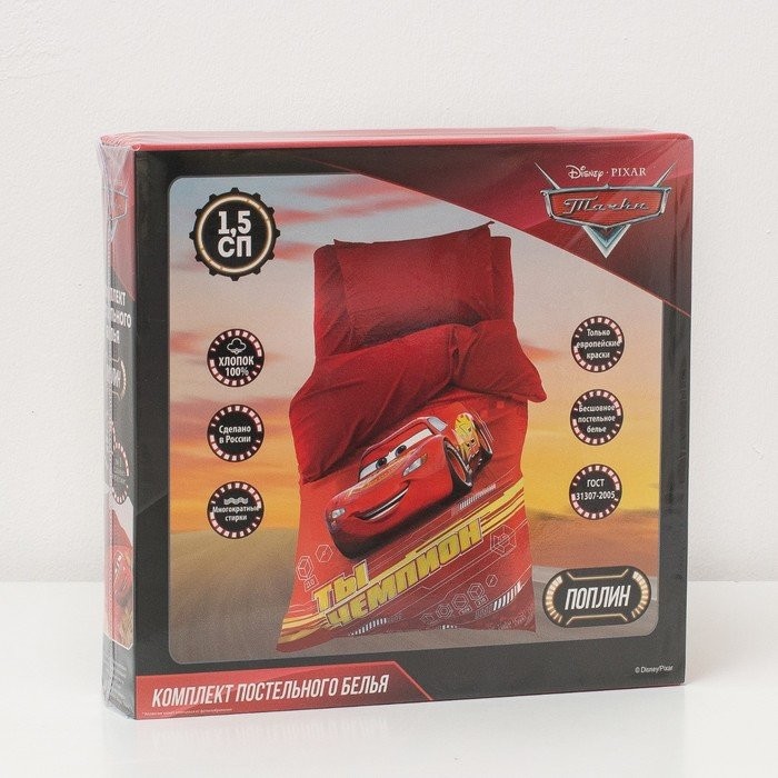 Постельное бельё 1.5 сп «Тачки» 143×215 см, 150×214 см, 50×70 1 шт, поплин 125 г/м2